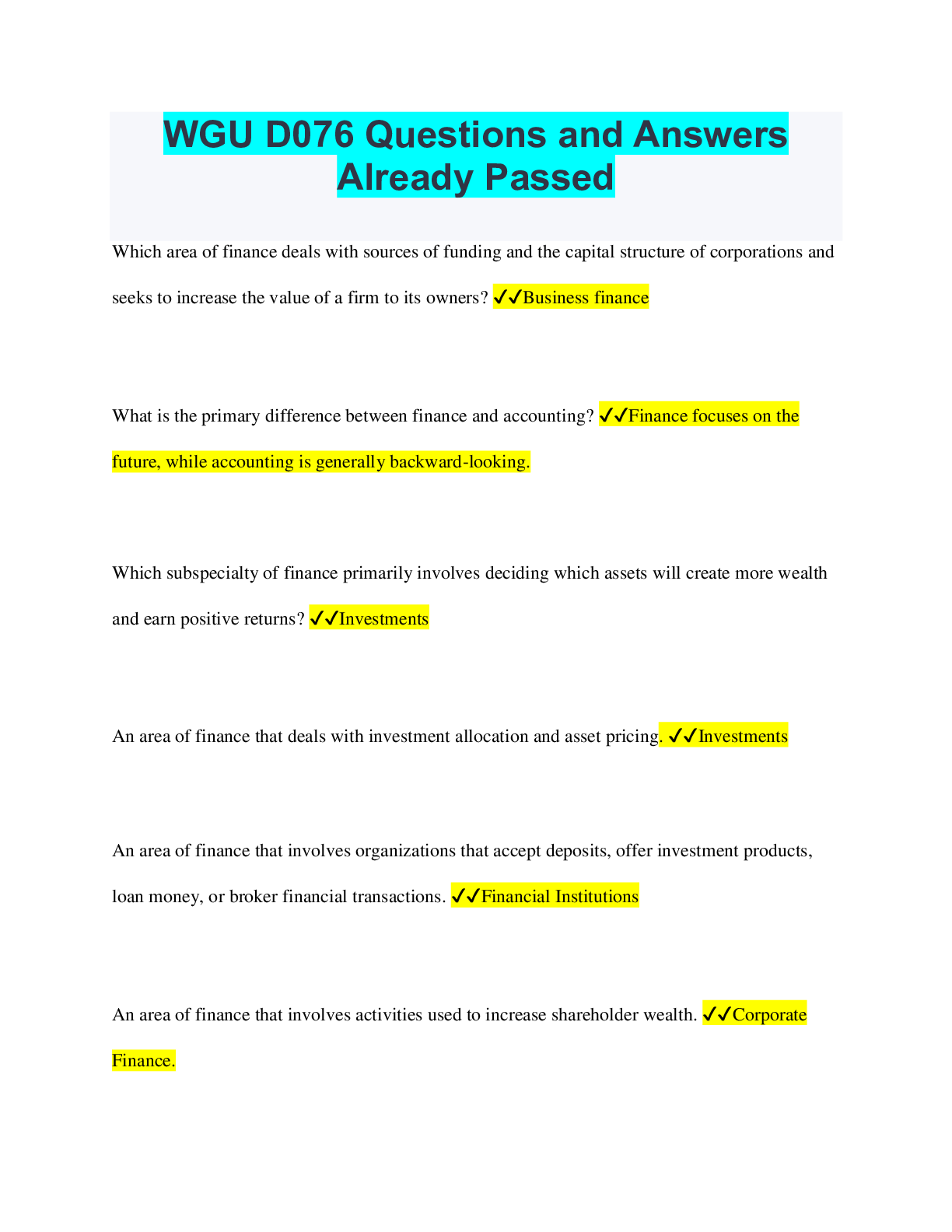 Bundle for WGU C952 Tests | Updated & Verified | Everything you need to Pass!!