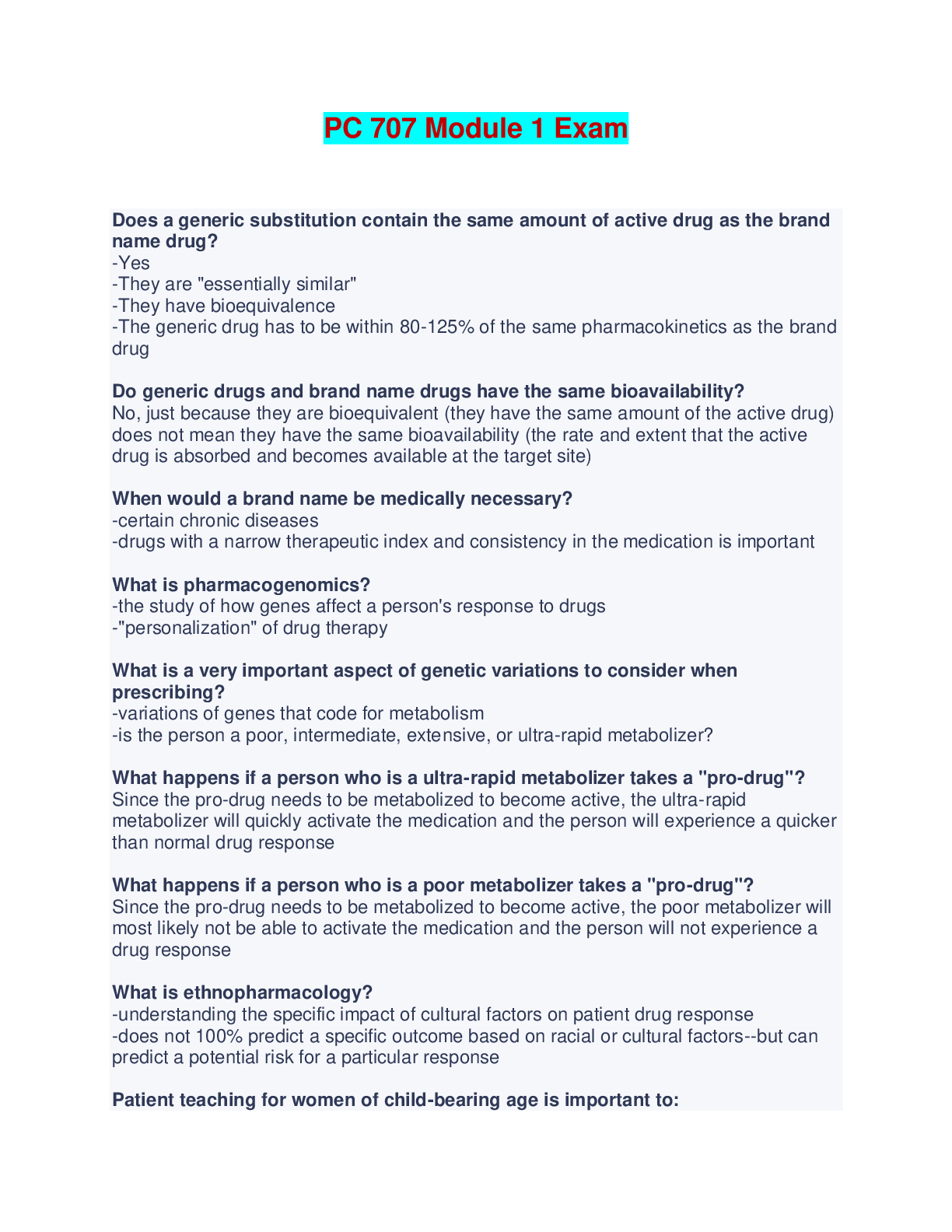 PC 707 MODULE 1 -9 EXAMS BUNDLE - QUESTIONS AND ANSWERS