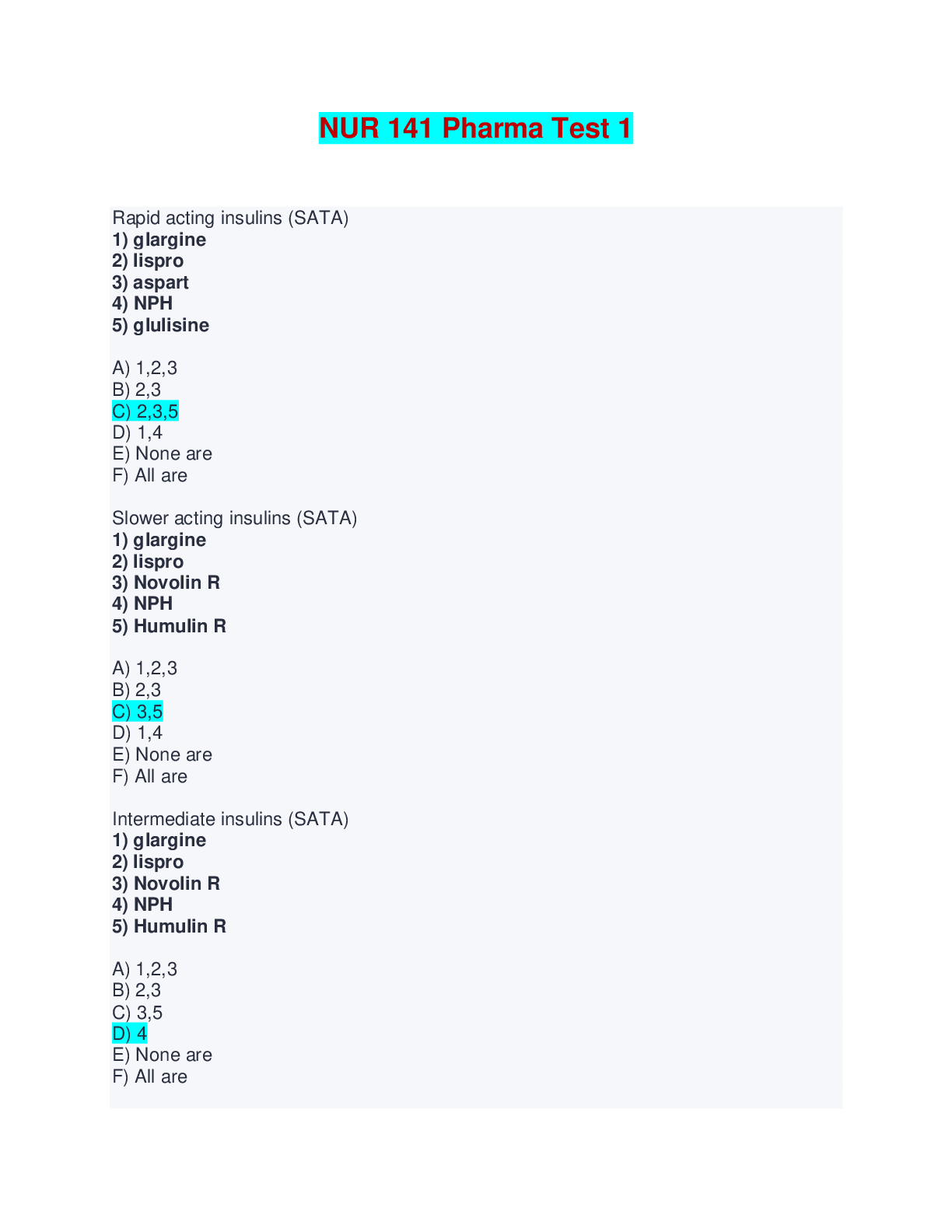 NUR 141 PHARMA TEST 1 - 4 BUNDLE
