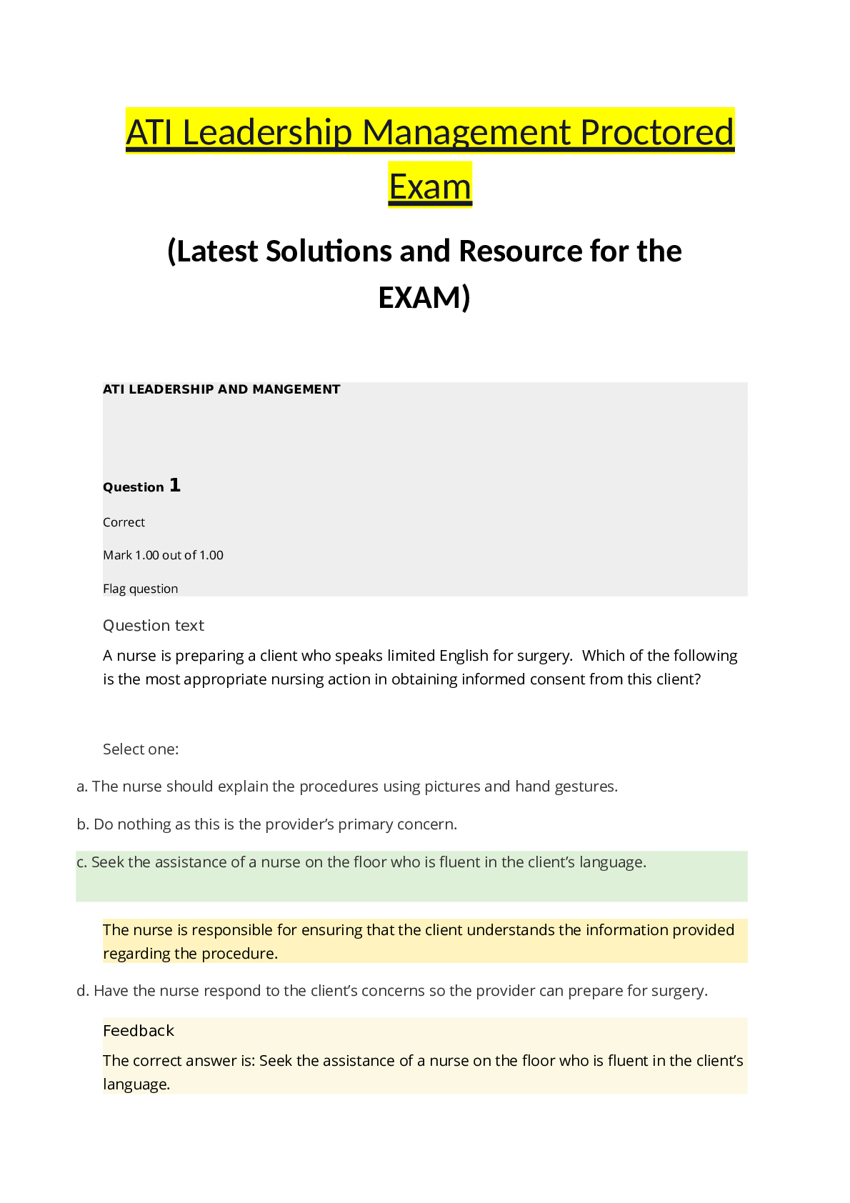 ATI Leadership Proctored A Final Exam 2022/2023 Verified and Graded A ATI Leadership Proctored B Final Exam 2022/2023 Verified and Graded A ATI Leadership Proctored C Final Exam 2022/2023 Verifi...