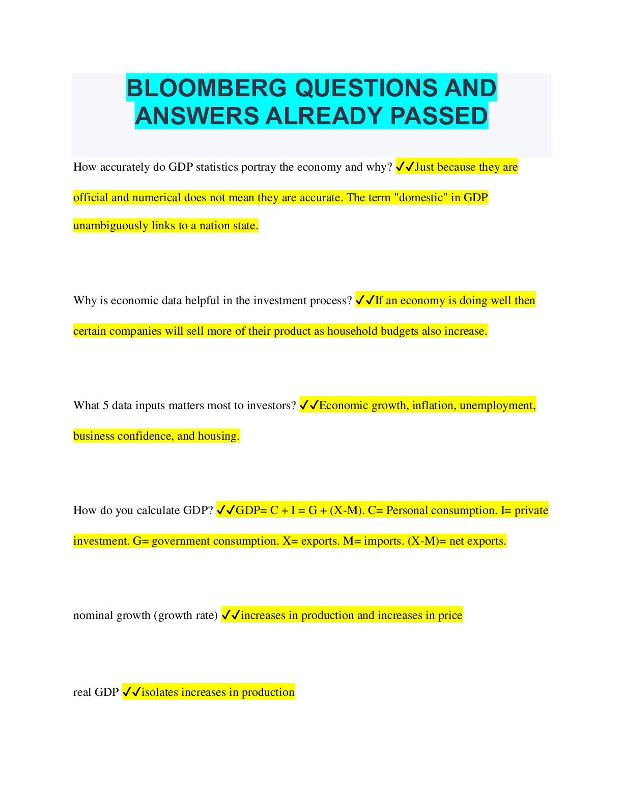 Bloomberg Bundled Exams Questions and Answers Already Passed
