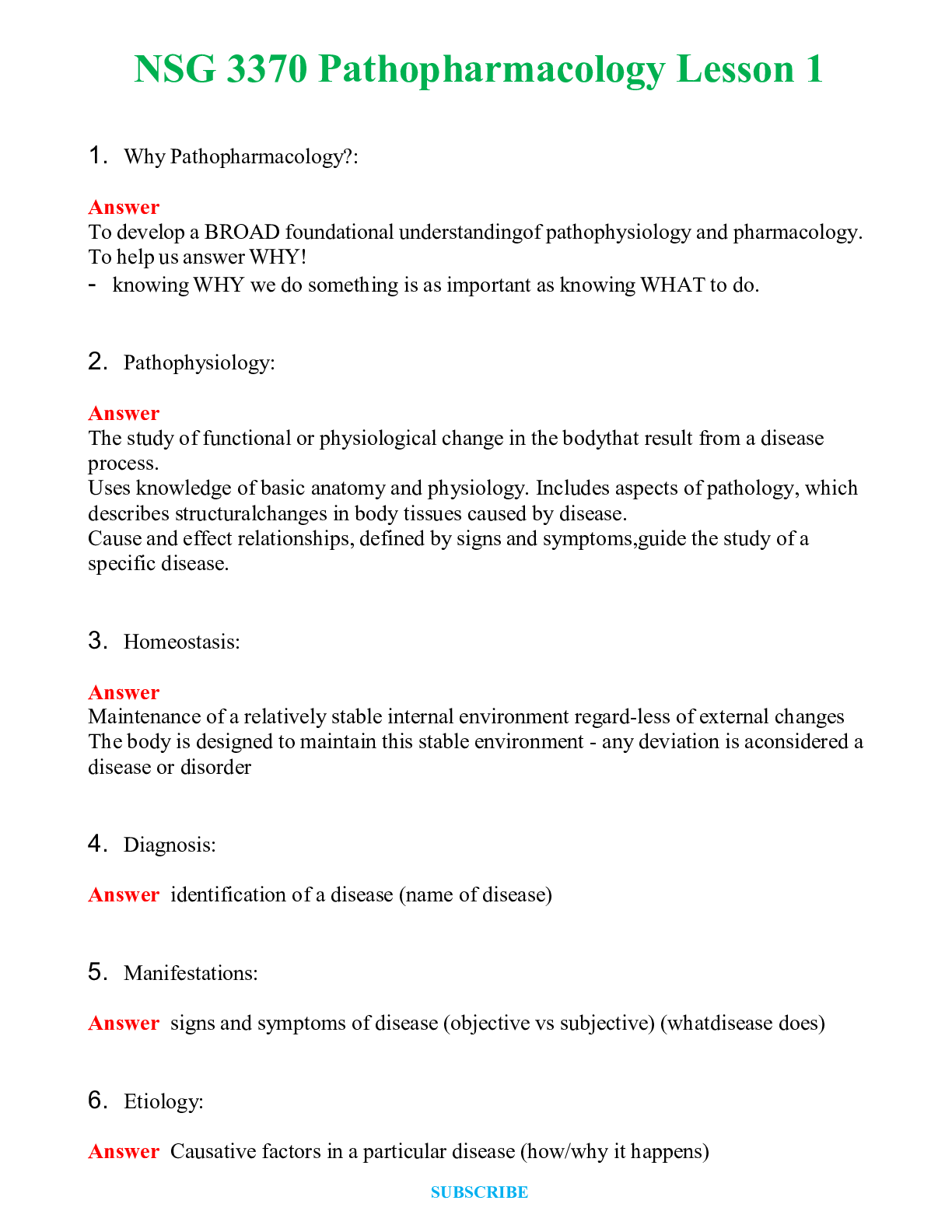 NSG 3370 BUNDLE Pathopharmacology Lesson 1,2, Lesson 3 Sherpath Test Bank - All Q&As Brand NEW Guaranteed A++ (Latest 2024 - 2025)