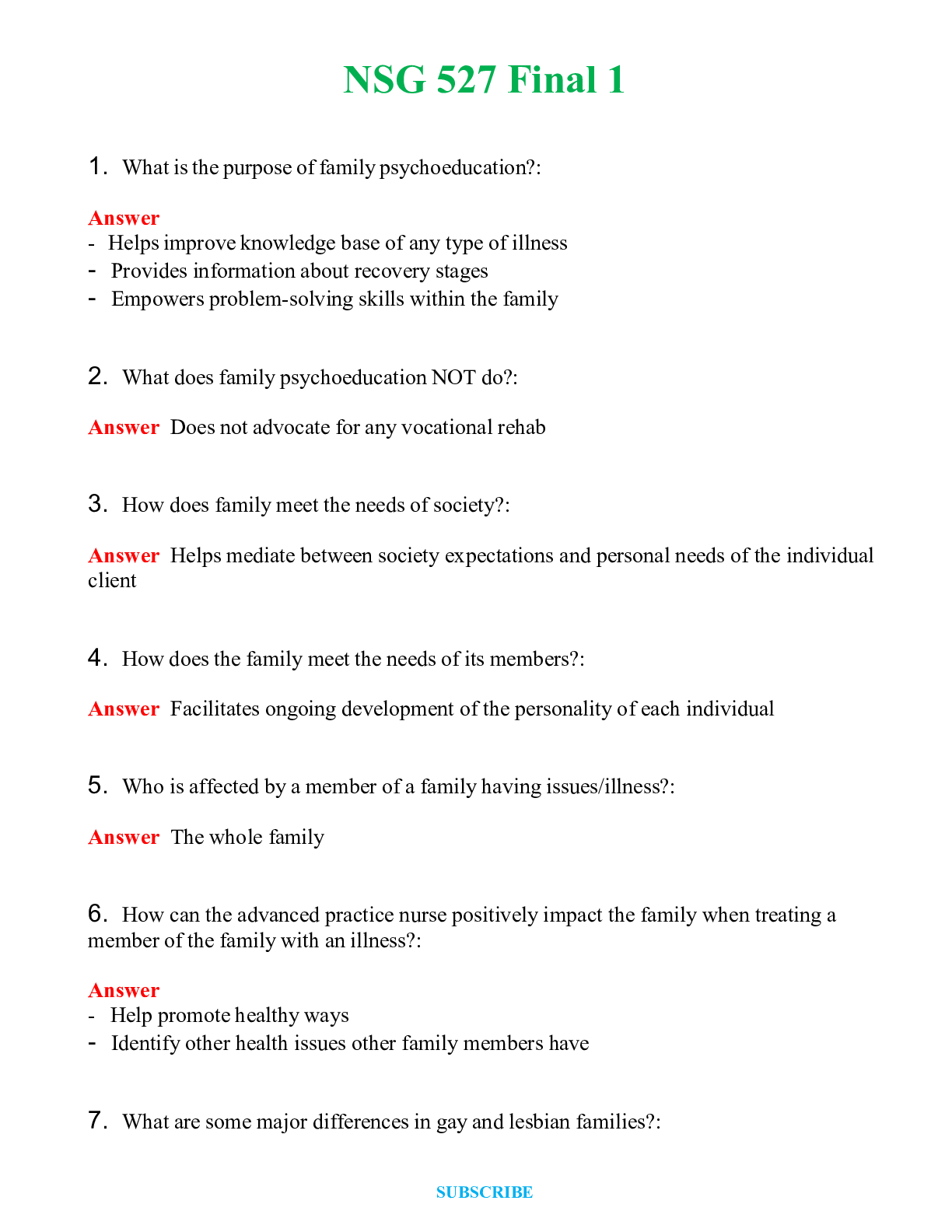NSG 308 (Latest 2024) Exam 1,2,3,4,5,6,7 GRADED A+ (ACTUAL EXAM ) Questions and Answers (Solved) BUNDLE
