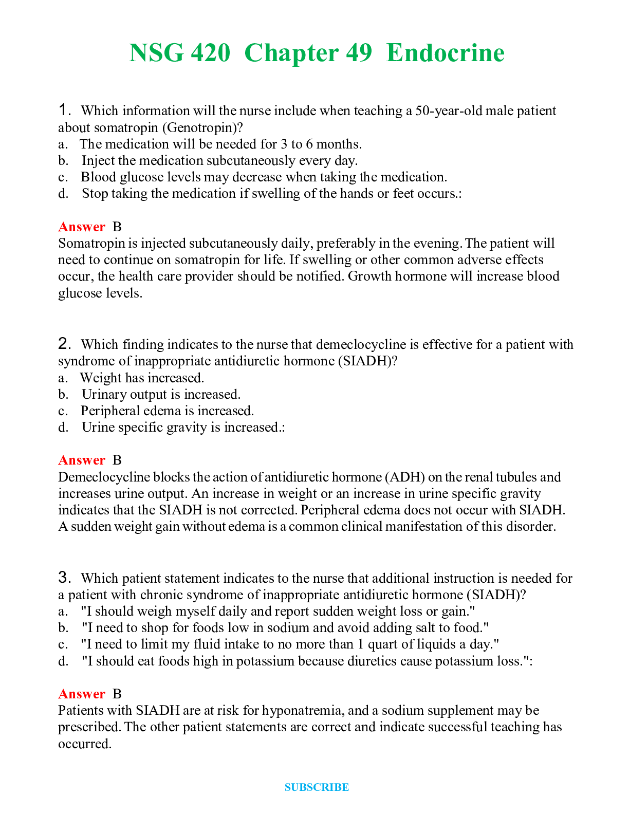 NSG 420 Bundle Chapter 49 Endocrine, Chapter 27 Respiratory TEST BANK Questions and Answers Included (Latest 2024)