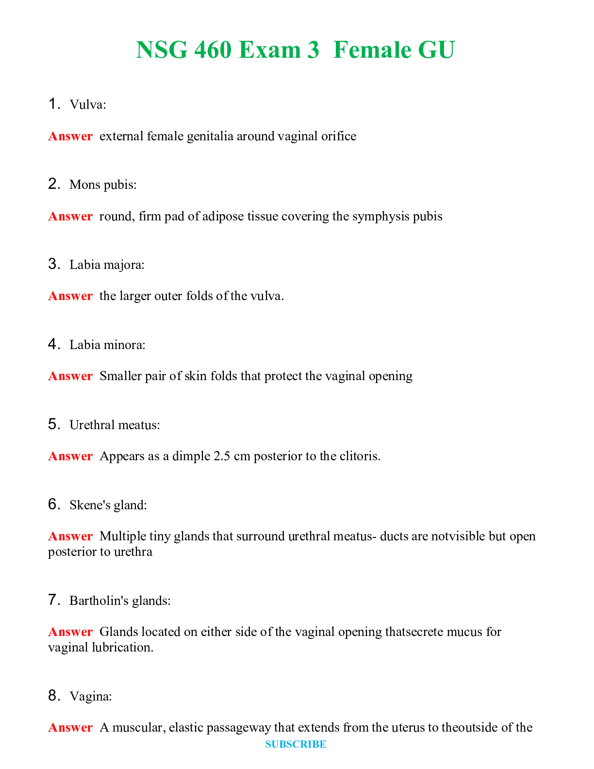 NSG 460 BUNDLE Exam 3 - Female GU, WVUSON, Male GU | Passed | A+ Rated Guide | New Full Exam | Updated 2024 |