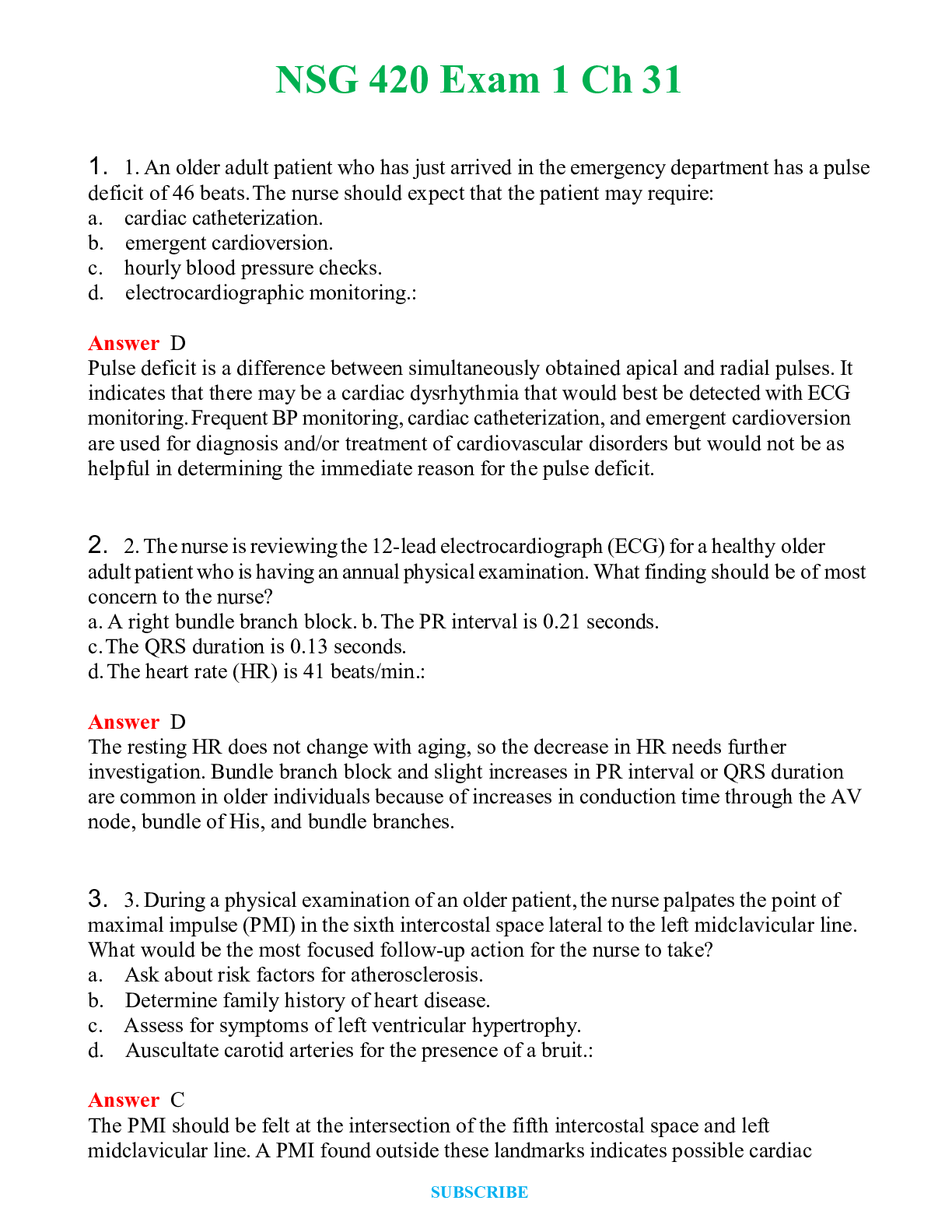 NSG 302 BUNDLE Exam 3 - Adaptive , Cardio, Assessment GRADED A+ (ACTUAL EXAM ) Questions and Answers (Solved) | Updated 2024 |