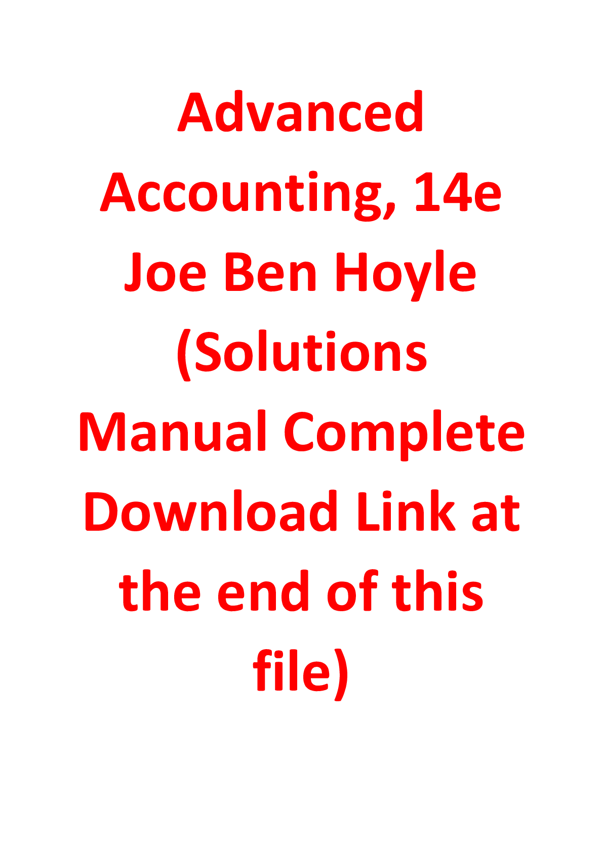 Advanced Accounting, 14e Joe Ben Hoyle (Solutions Manual and Test Bank with Free eBook) Solutions Manual and Test Bank Download with Free eBook Bundle