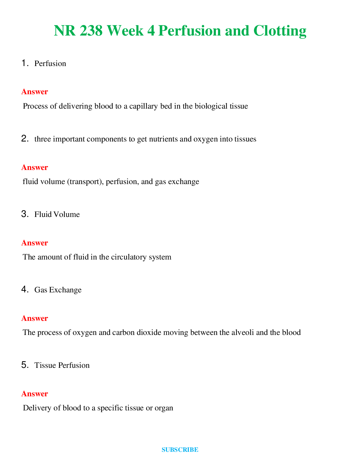 NR 238 BUNDLE Week 4 Perfusion and Clotting , Week 5 Homeostasis and Elimination Complete Answers 100% Correct (Latest 2024) TEST BANK
