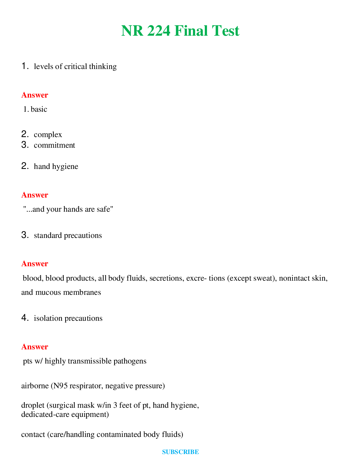 NR 224 Bundle Test - Safety ,Final , Medication, Nutrition Guaranteed A+ Test Bank Actual Questions and Answers, Complete 100% 2024