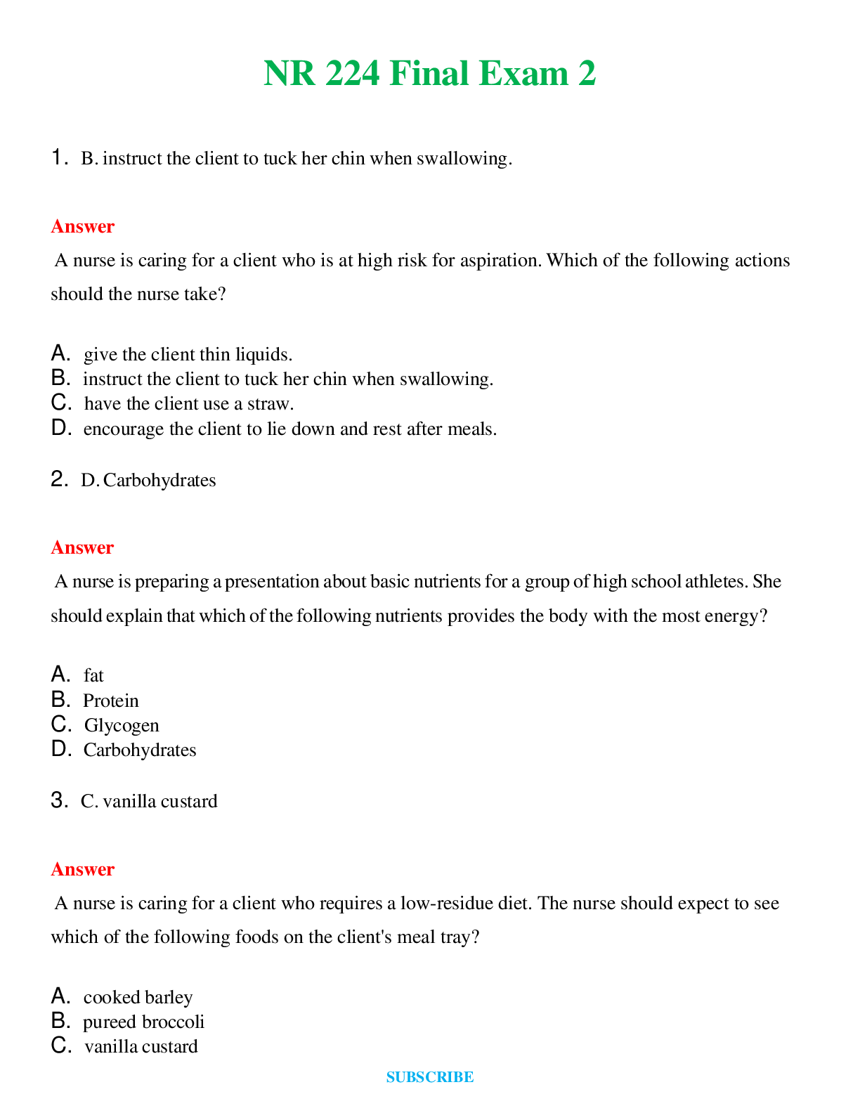 NR 222 (Latest 2024) FINAL EXAM 1,2,3 New Full Questions and Answers ( Included ) 100% Correct BUNDLE
