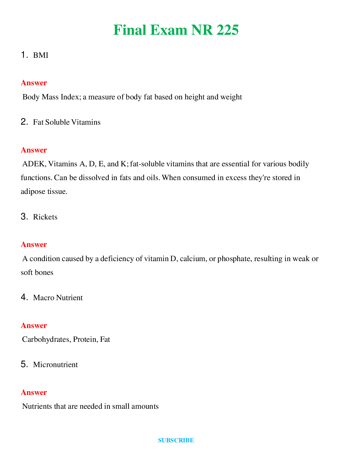 NR 302 BUNDLE Final Exam 1,2, Final Review ( 2 ) | A+ Rated Guide | Questions and Answers (Solved) 2024 - 2025