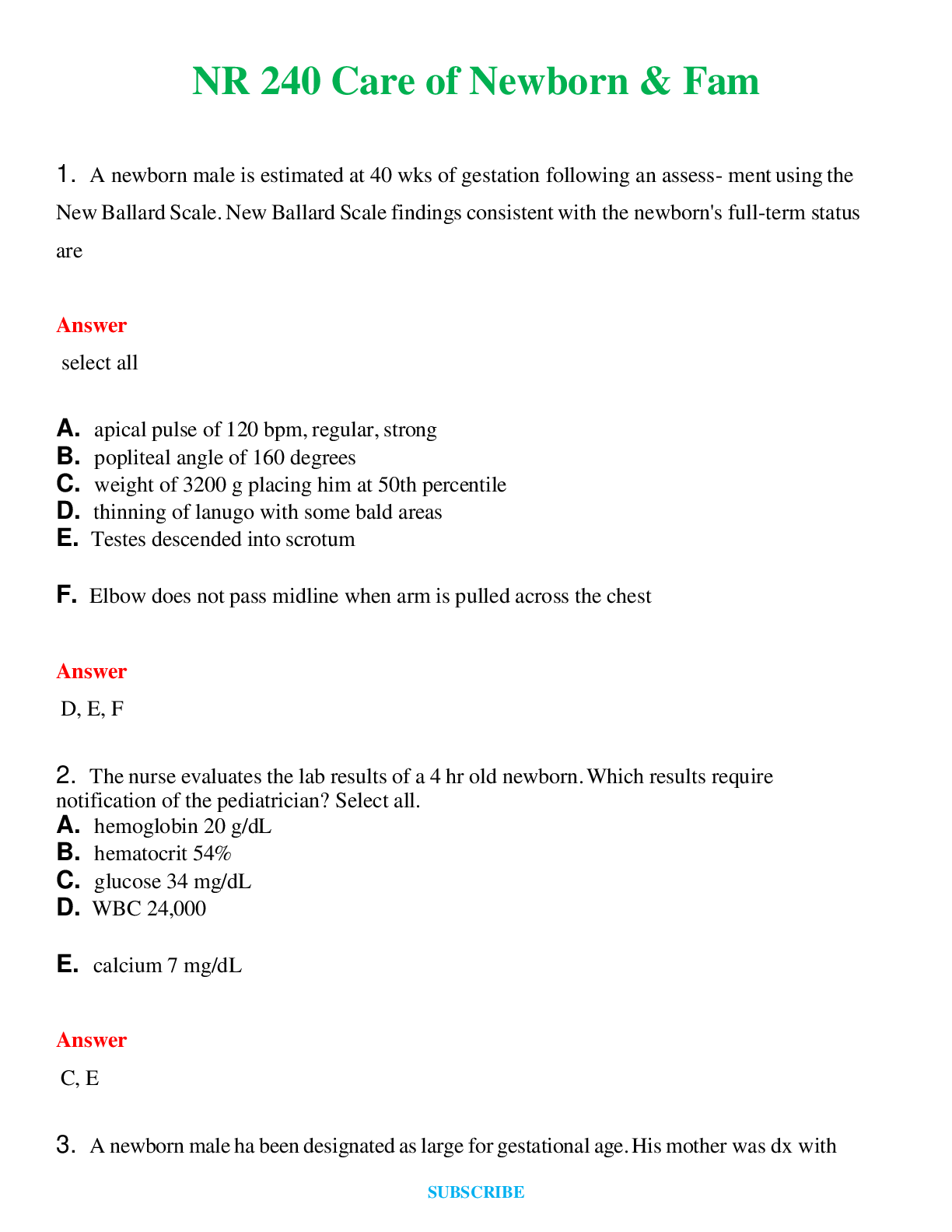 NR 240 BUNDLE Care of Newborn & Fam , Newborn Adaptations TEST BANK Questions and Answers Included (Latest 2024 - 2025)