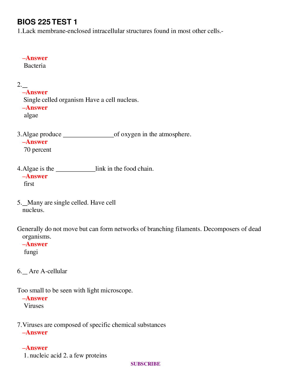 BIOS 105 (Latest 2024 - 2025) Quizzes , Quiz 1, Study Questions Test Bank - All Q&As Brand NEW Guaranteed A++ 2024