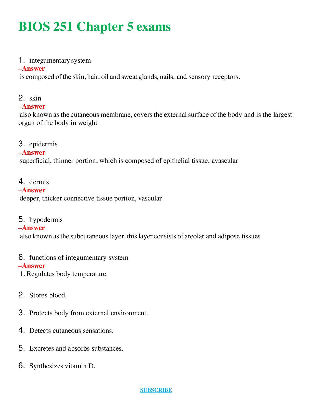BIOS 251 Bundle Chapter 5 Exams, Chapter 7 TEST BANK Questions and Answers Included (Latest 2024 - 2025)