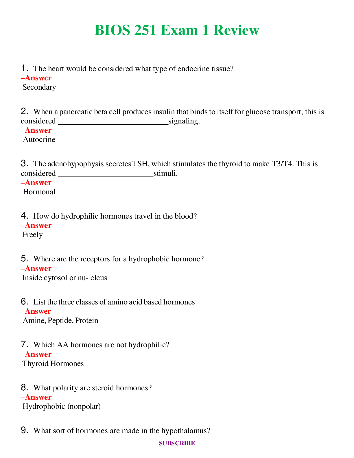 BIOS 255 BUNDLE Exam 1 ,2,3,4 New Full Questions and Answers ( Included ) 100% Correct