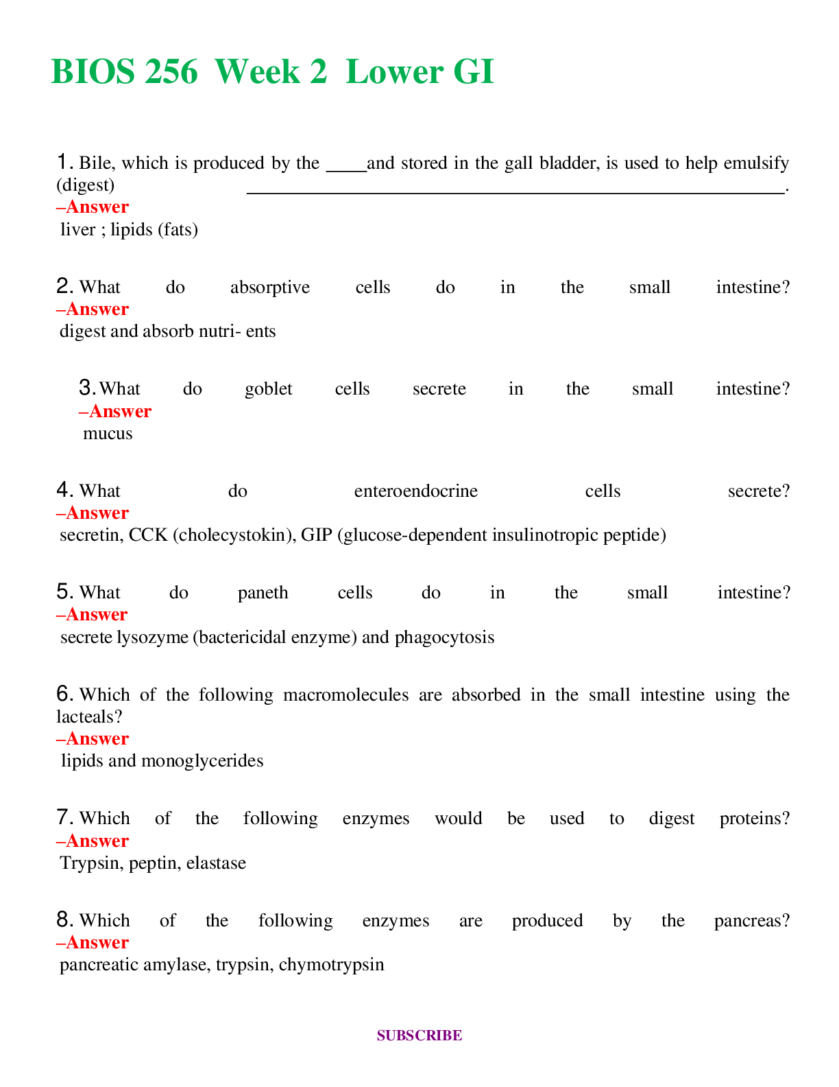BIOS 256 Week - 2 Lower GI , 4 Review , 5, 6 Reproductive System Edapt, 7 Development and Inheritance A++ Exam with All New Qs & As - Guaranteed Pass! (Latest 2024)