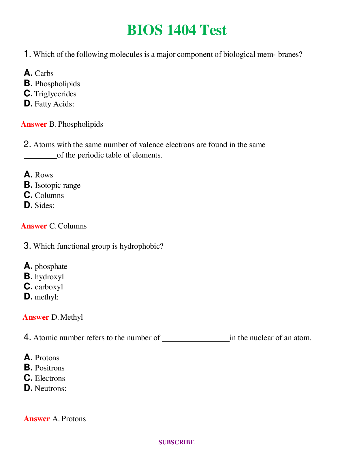BIOS 1404 BUNDLE Test 1 ,3,4 Complete Answers 100% Correct (Latest 2024) TEST BANK