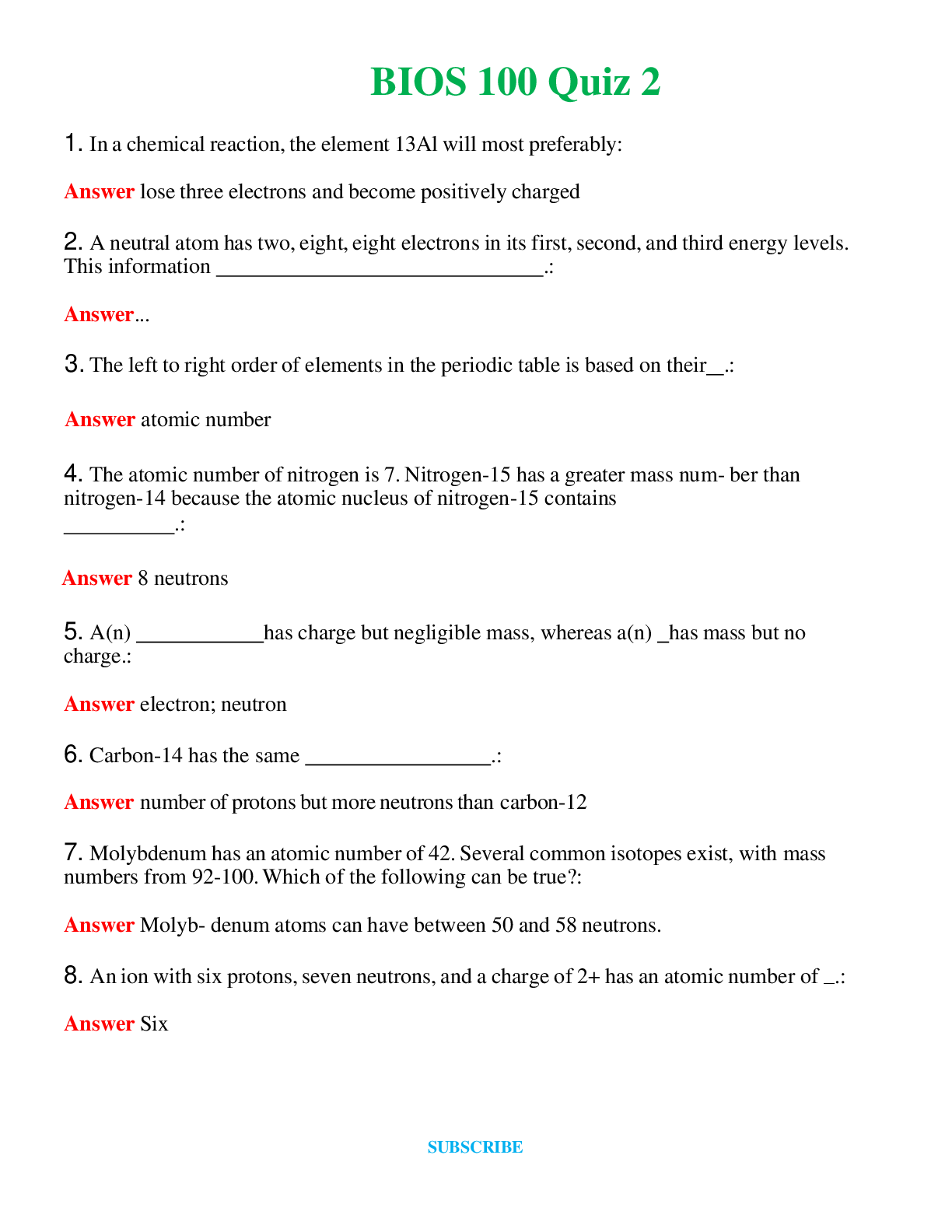 BIOS 100 (Latest 2024) Quiz 2,6,11 A++ Exam with All New Qs & As - Guaranteed Pass! BUNDLE