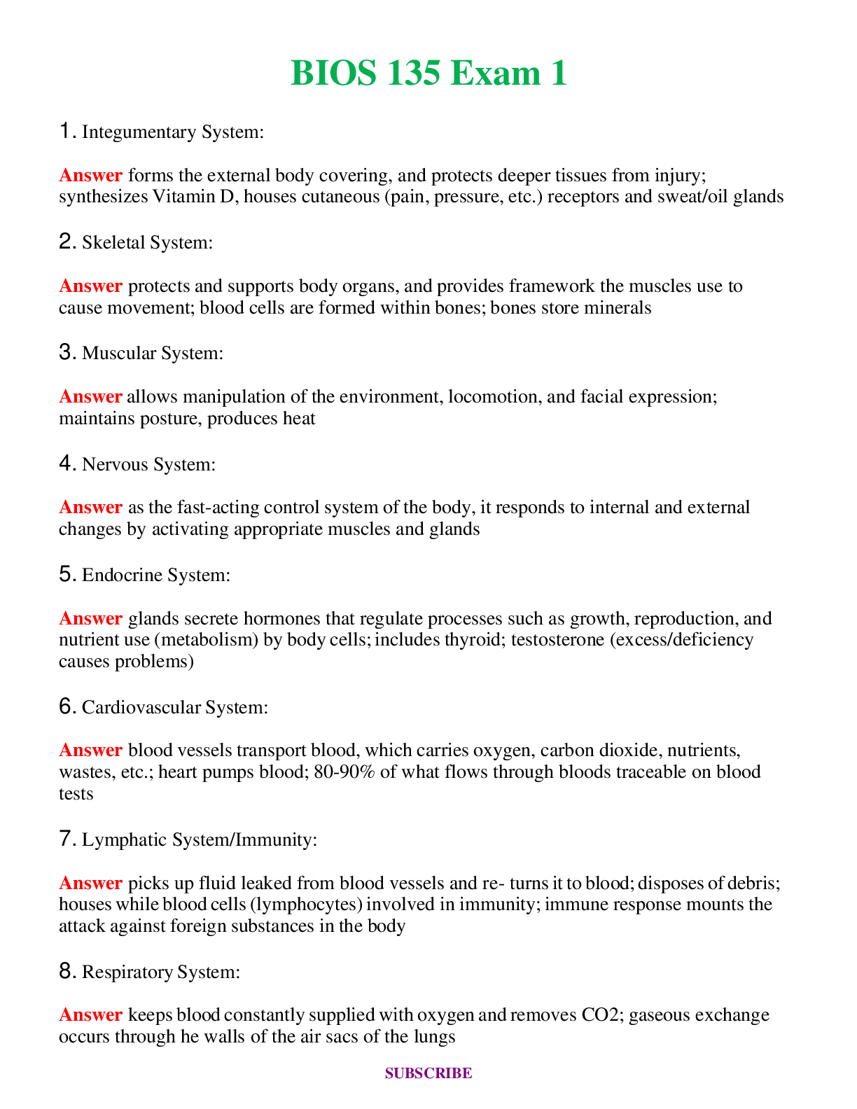 BIOS 135 (Latest 2024 - 2025) Exam 1,2 , Final Exam , Midterm Exam New Full Questions and Answers ( Included ) 100% Correct BUNDLE