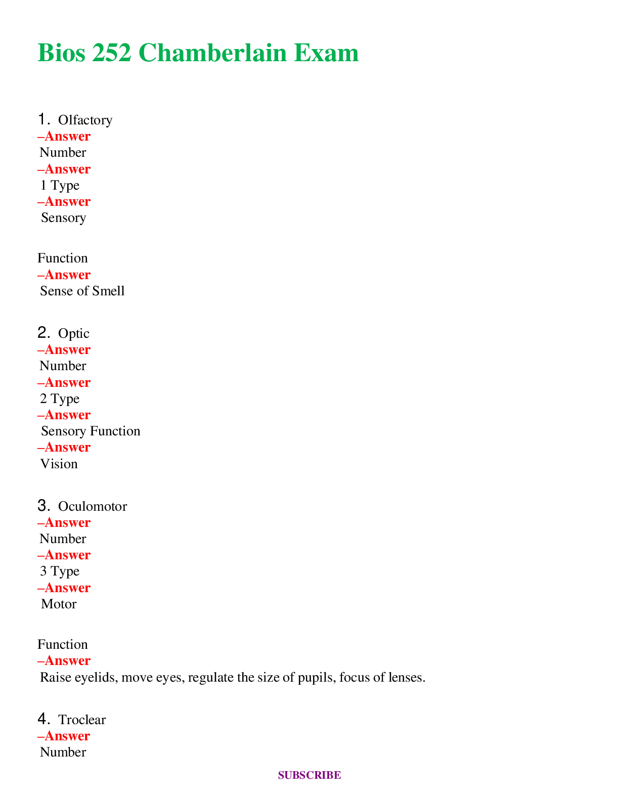BIOS 252 BUNDLE Chamberlain Exam, Comprehensive Exam, Exam 1,2,3 , Final Exam (Latest 2024 - 2025) Actual Questions and Answers 100% Correct
