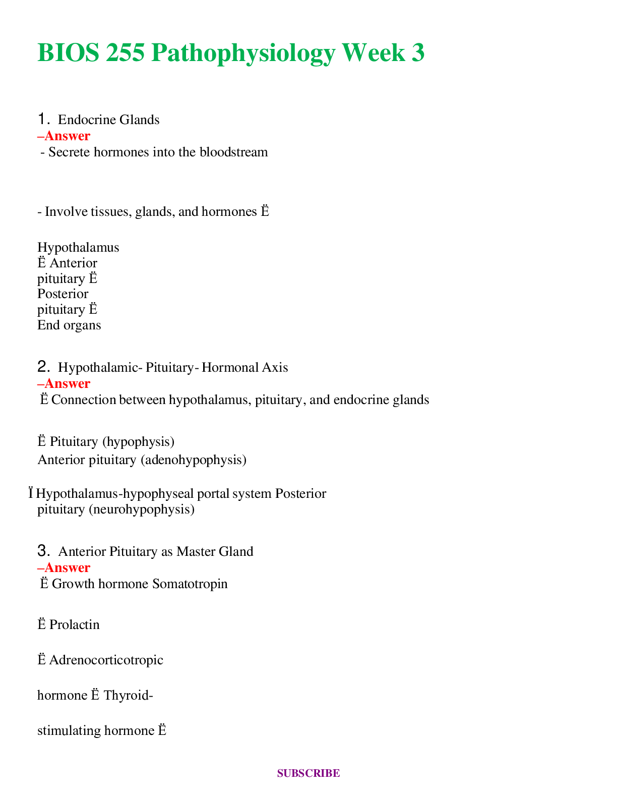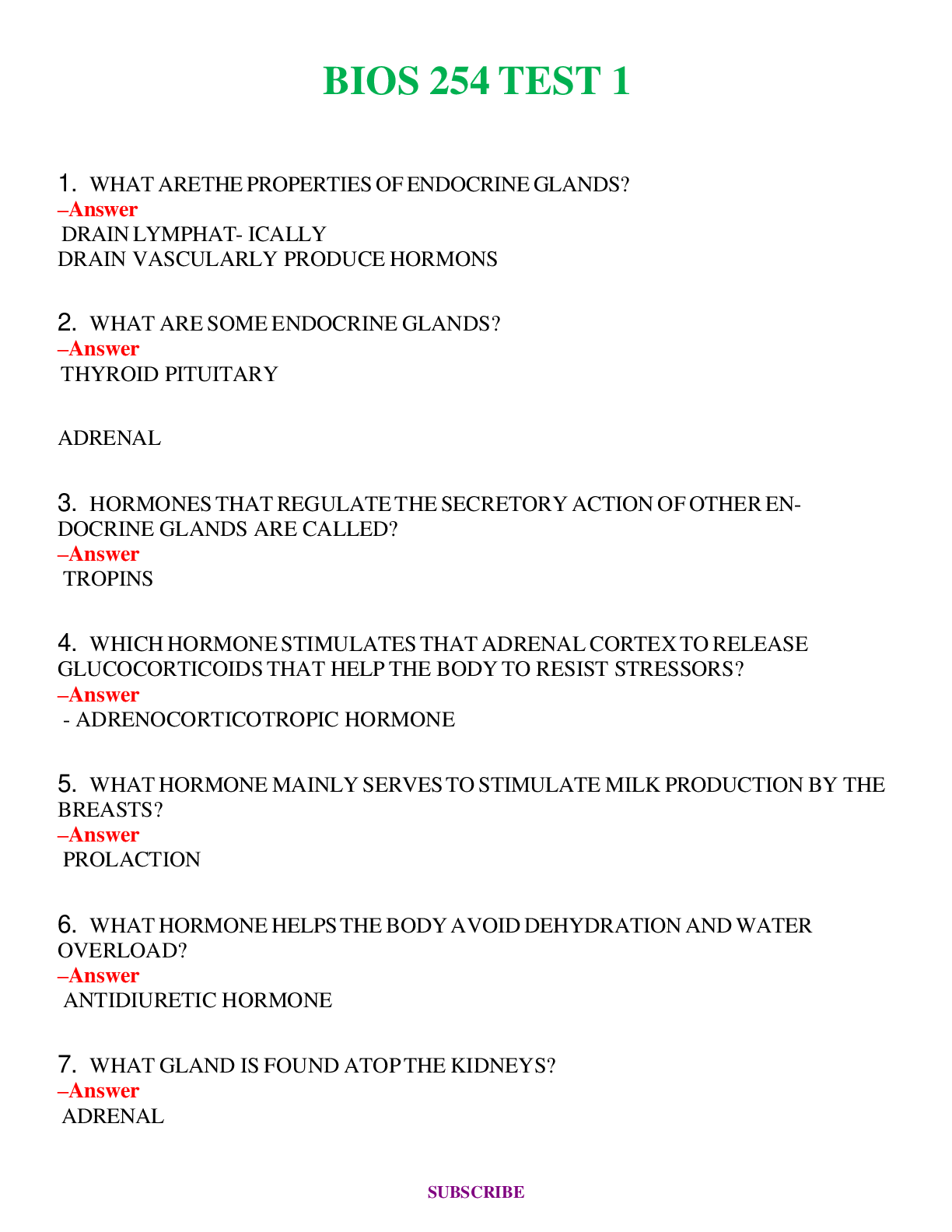 BIOS 252 BUNDLE Week 1 Study Guide , Week 2 KN, Weeks 3 ,4,5, Week 6 The Endocrine System Pt. 1 Complete Answers 100% Correct (Latest 2024) TEST BANK