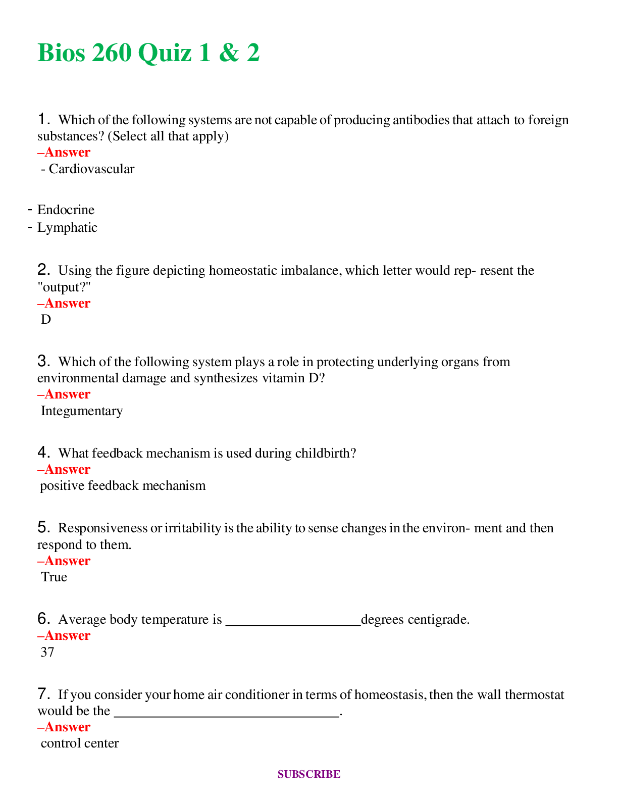 BIOS 260 (Latest 2024) Test 1 , Quiz 1 & 2 Test Bank - All Q&As Brand NEW Guaranteed A++ BUNDLE