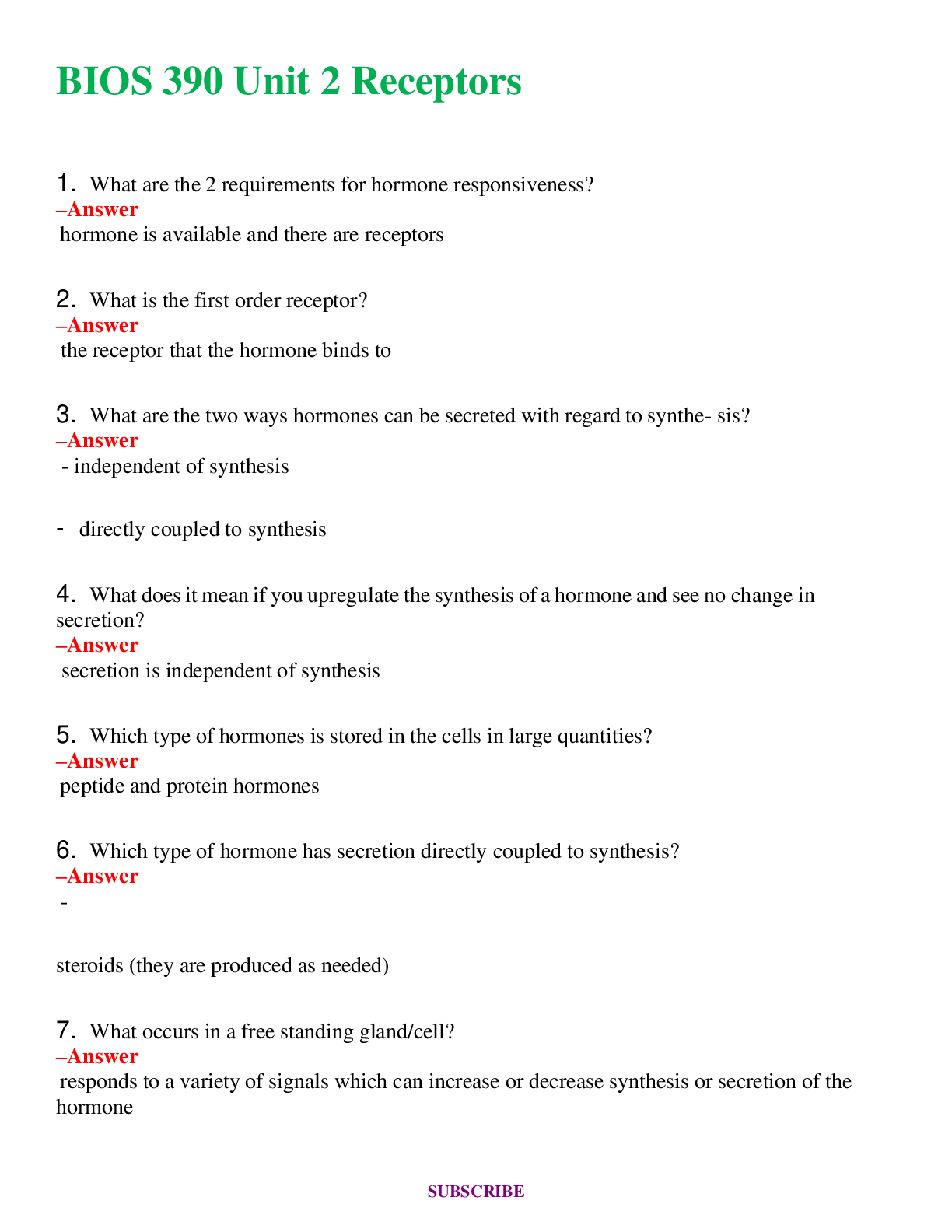 BIOS 390 | Updated 2024 | Unit 2,3 Receptors GRADED A+ (ACTUAL EXAM ) Questions and Answers (Solved) BUNDLE