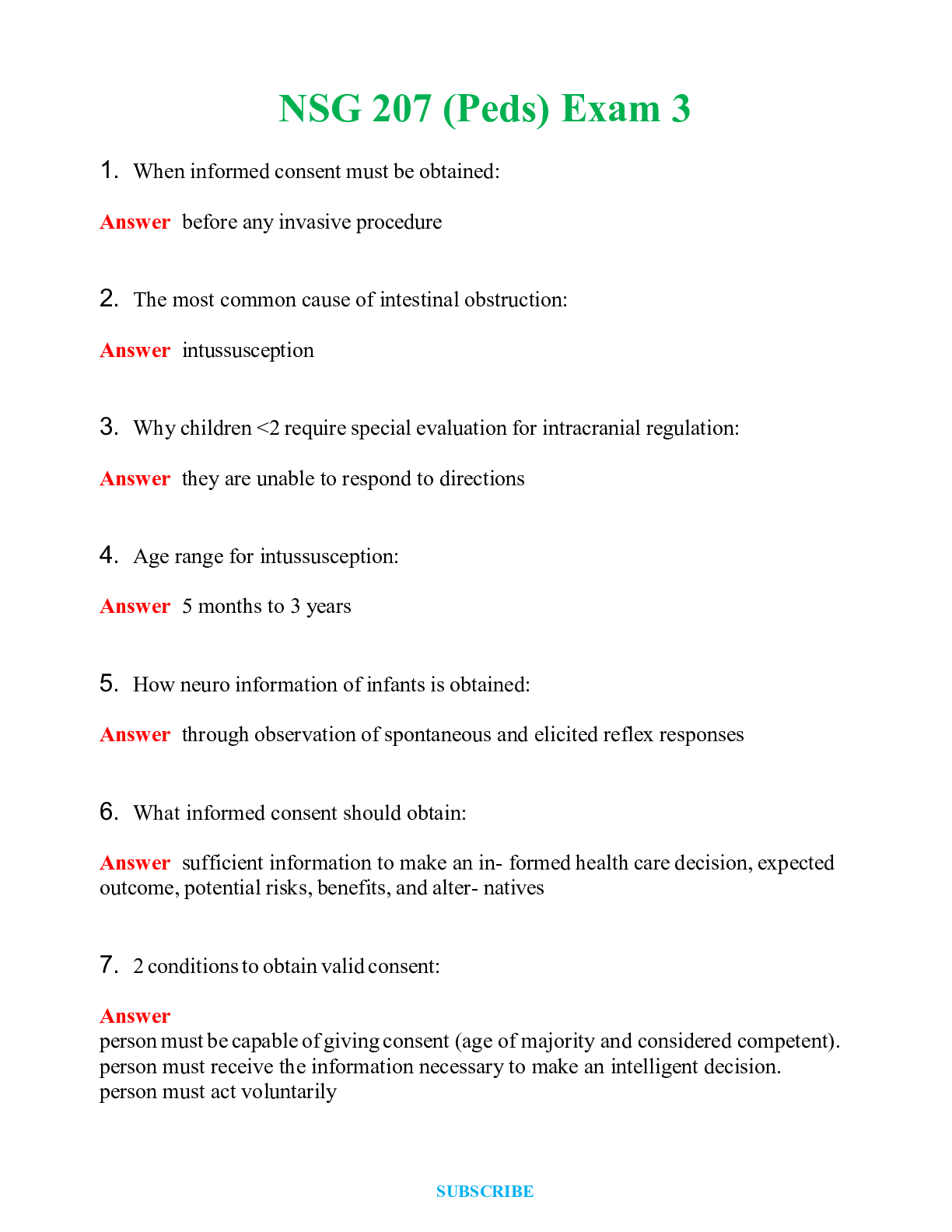 NSG 207 BUBDLE Exam 1 ,2, (Peds) Exam 3. 4,5 Final Exam GRADED A+ (ACTUAL EXAM ) Questions and Answers (Solved) 2024