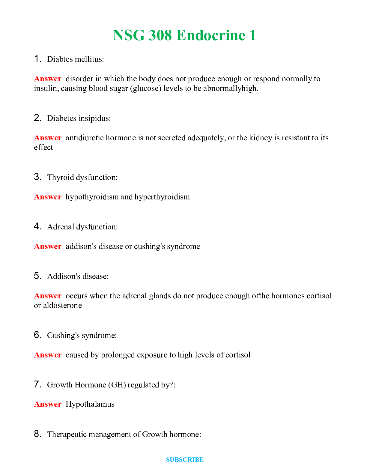 NSG 308 BUNDLE Endocrine 1,2 Complete Answers 100% Correct (Latest 2024) TEST BANK