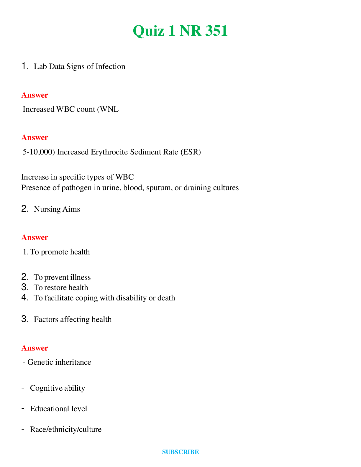 NR 351 Exams Set (Latest 2024 / 2025) Questions & Answers with rationales