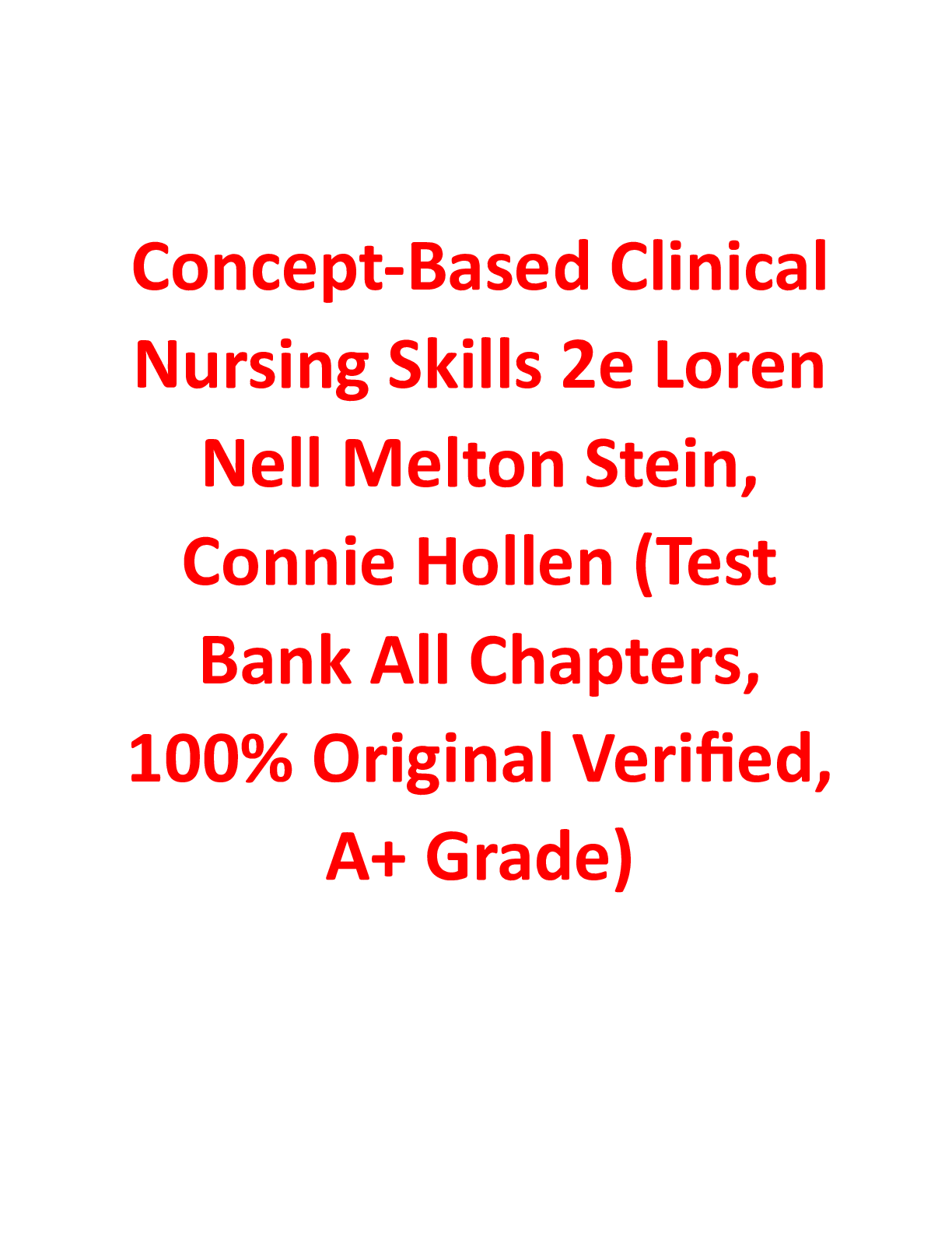 Case Solutions With Test Bank For Concept-Based Clinical Nursing Skills 2nd Edition By Loren Nell Melton Stein, Connie Hollen Case Solutions With Test Bank For Concept-Based Clinical Nursing Skill...