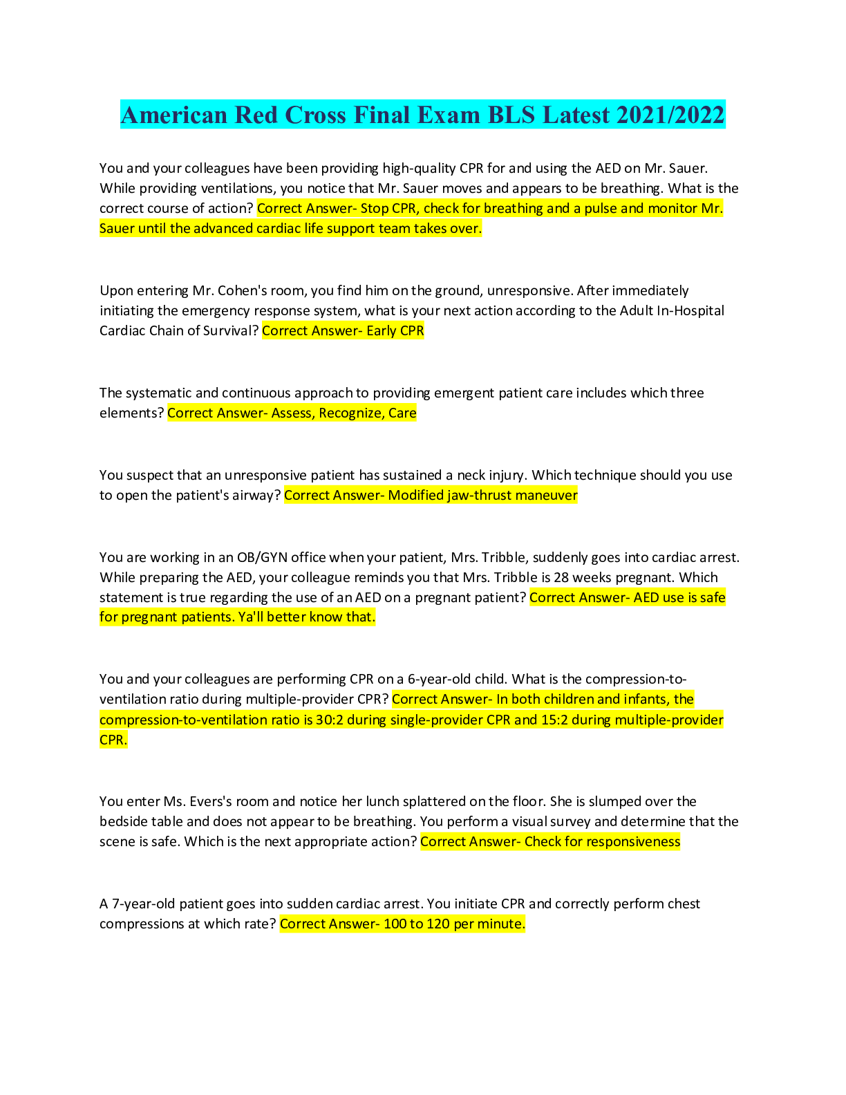 Bundle for Basic Life Support (BLS) Tests Compilation | Updated & Verified | Everything you need!!