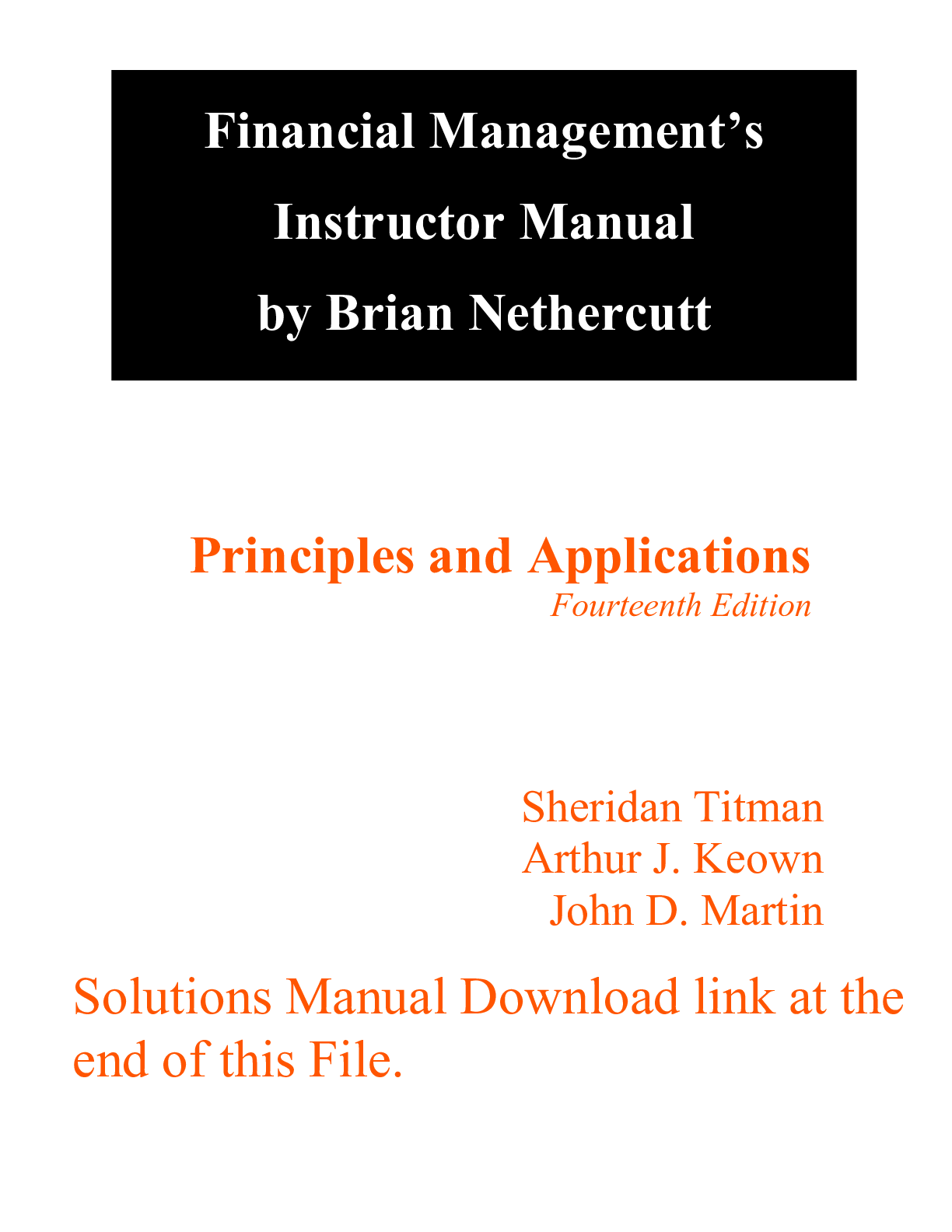 Test Bank with Solutions Manual For Financial Management Principles and Applications, 14th Edition By Sheridan Titman, Arthur Keown, John Martin (All Chapters 100% Original Verified A+ Grade) Test Ba...