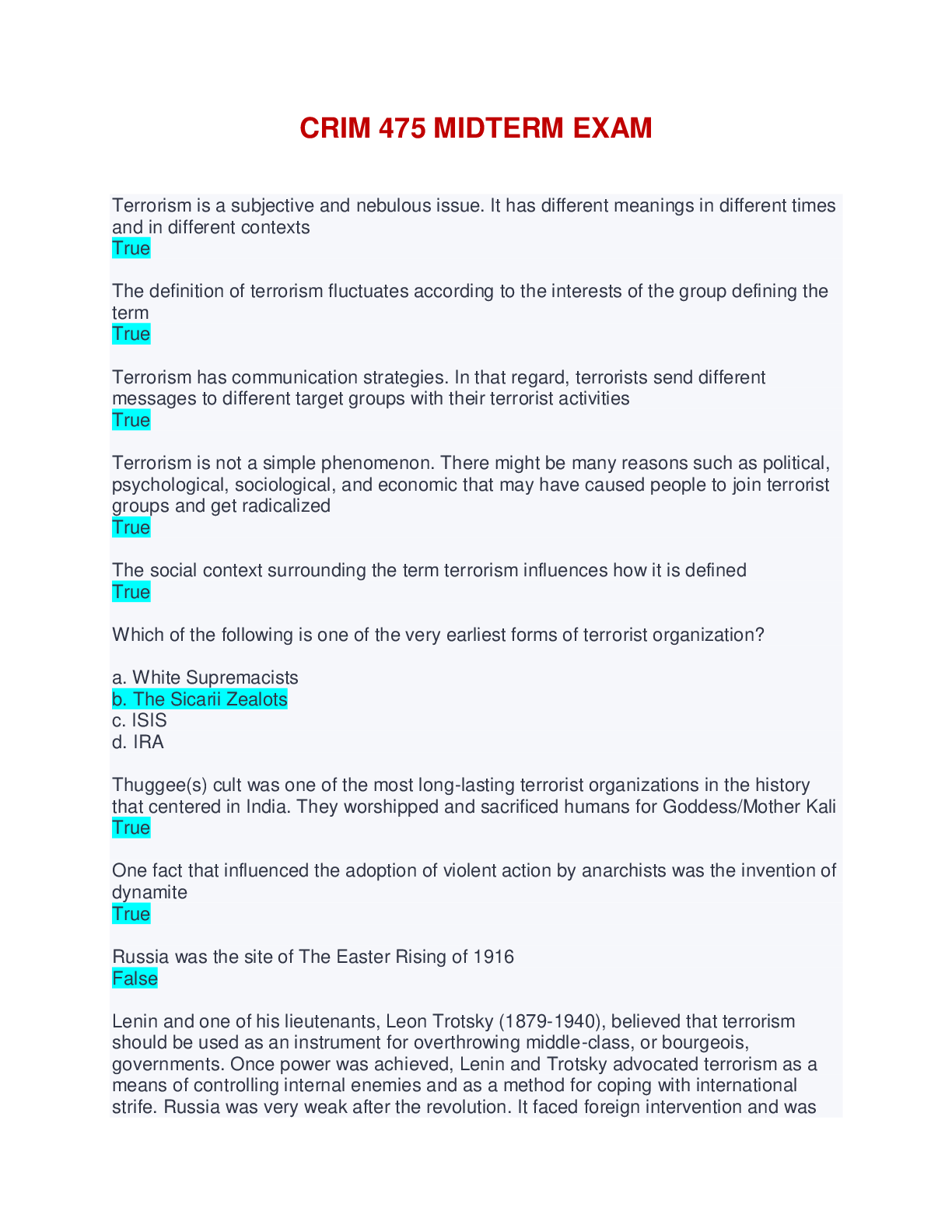 CRIM 475 MIDTERM AND FINAL EXAM BUNDLE