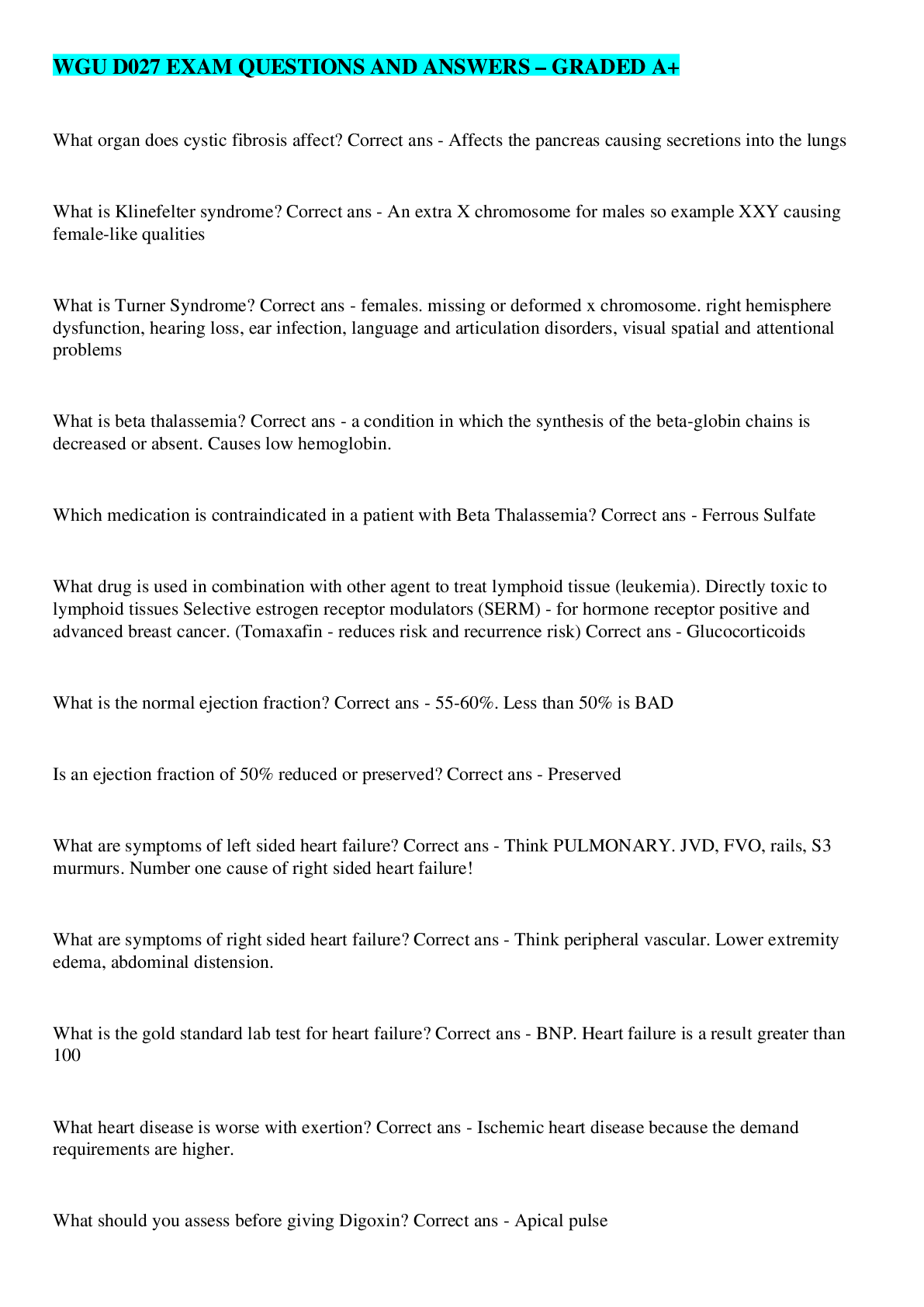 WGU STUDY GUIDE C787 LATEST 2022 GRADED A+ WGU Nutrition C787 Test (100% Verified) WGU c787 Nutrition cohort review questions and answers latest 2021/2022 WGU C787 Nutrition Exam Latest 2021/...