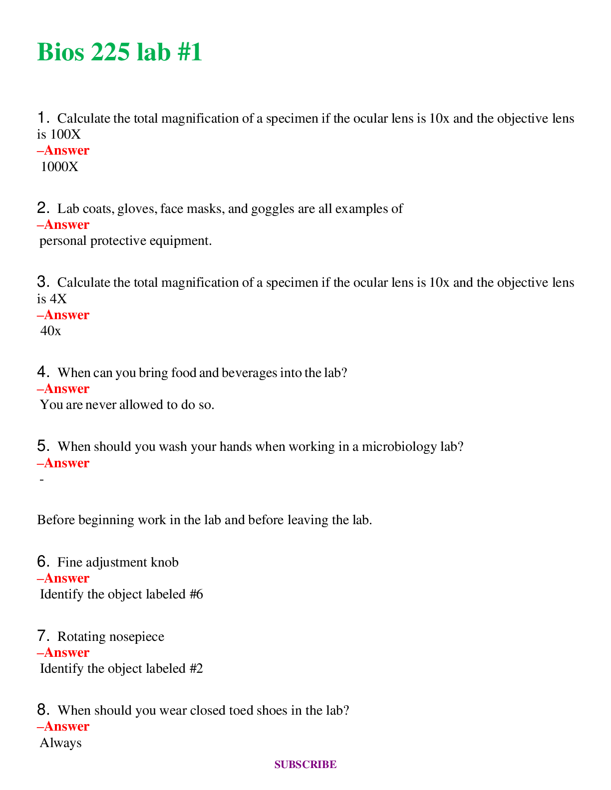 Straighterline Microbiology Lab BIO250L LABS 1, 2, 3, 4, 5, 6, 7 & 8 Bundled Worksheets ( Newest Version) All Scored 100%