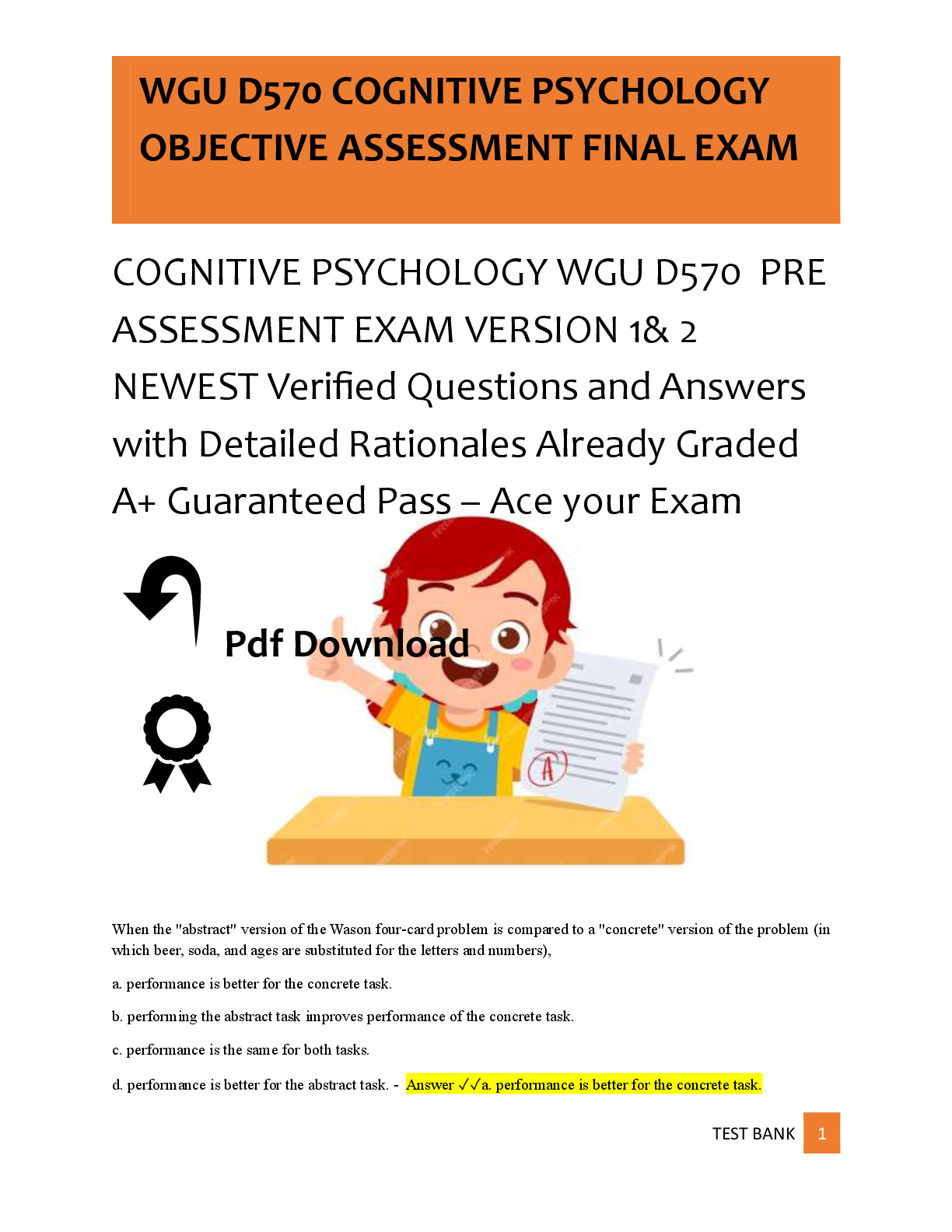 WGU D570 COGNITIVE PSYCHOLOGY OBJECTIVE ASSESSMENT FINAL EXAM Verified Questions and Answers with Detailed Rationales Already Graded A+ Guaranteed Pass – Ace your Exam