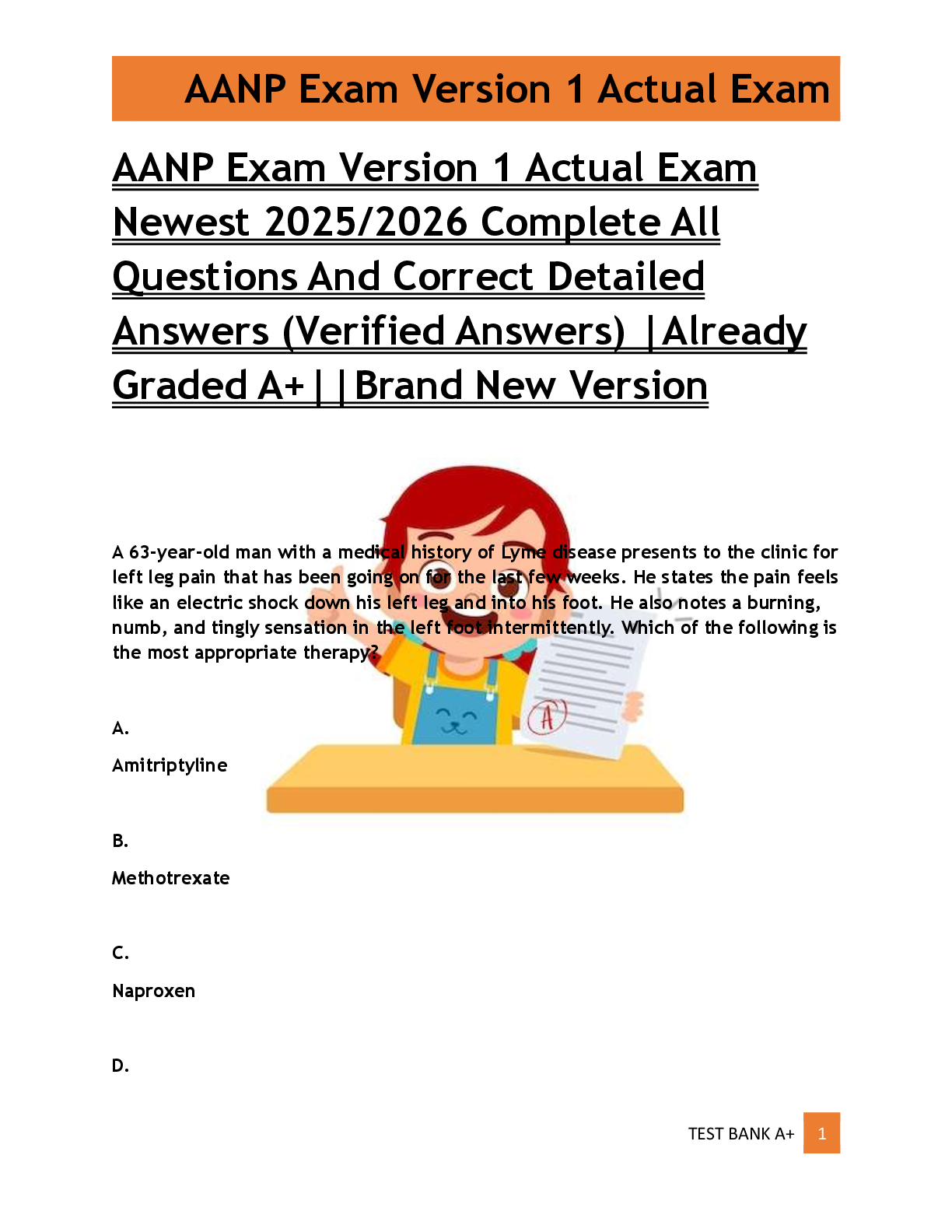 AANP Exam Version 1 Actual Exam Newest 2025/2026 Complete All Questions And Correct Detailed Answers (Verified Answers) |Already Graded A+||Brand New Version