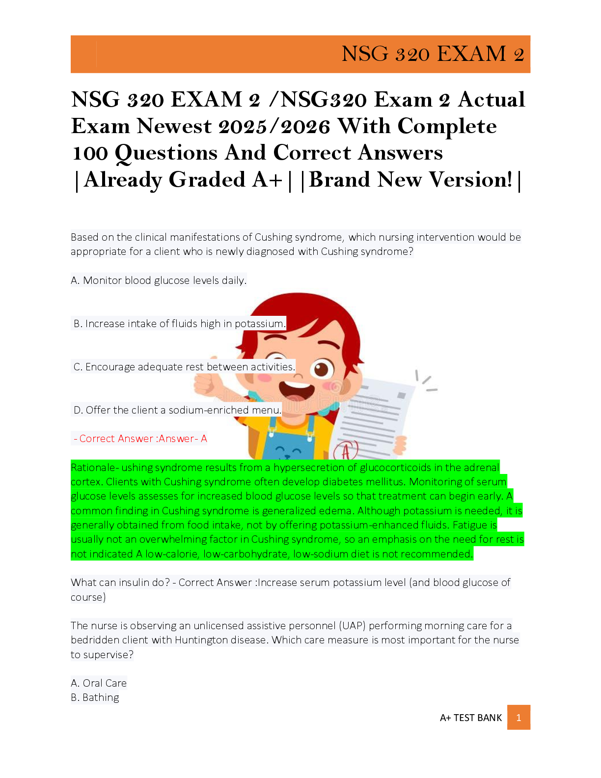 NSG 320 EXAM 2 /NSG320 Exam 2 Actual Exam Newest 2025/2026 With Complete 100 Questions And Correct Answers |Already Graded A+||Brand New Version!|