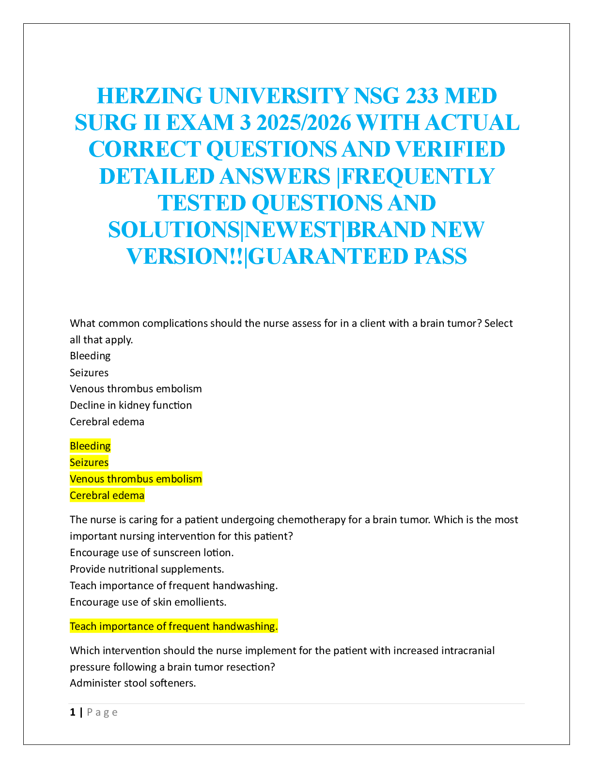 HERZING UNIVERSITY NSG 233 MED SURG II EXAM 1,2,3 AND FINAL 2025/2026 WITH ACTUAL CORRECT QUESTIONS AND VERIFIED DETAILED ANSWERS |FREQUENTLY TESTED QUESTIONS AND SOLUTIONS|NEWEST|BRAND NEW...