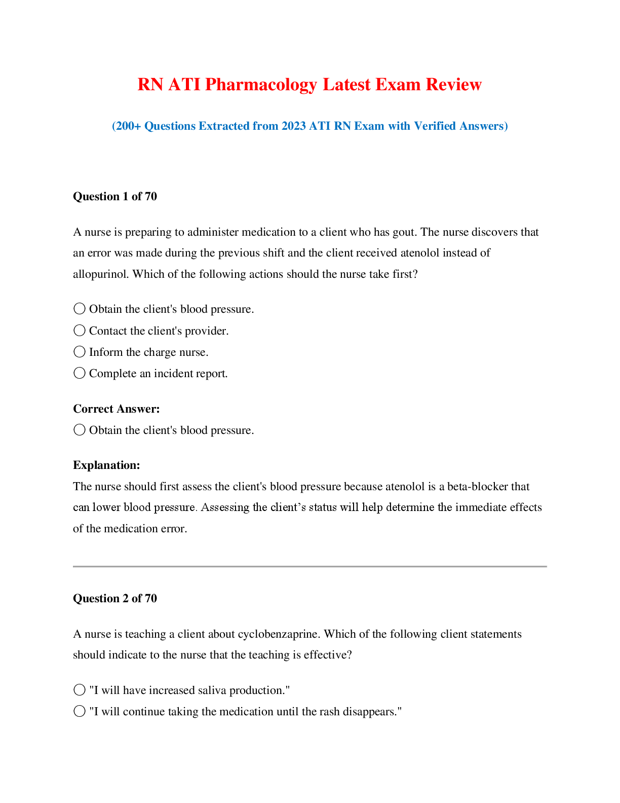 ATI PHARMACOLOGY PROCTORED EXAM NGN 2025-26 QUESTIONS AND ANSWERS CORRECTLY ANSWERED A+ GRADE ATI PHARMACOLOGY PROCTORED EXAM 2025-26 WITH NGN QUESTIONS 2 VERSIONS EACH WITH 70 QUESTIONS/A+ GRADE