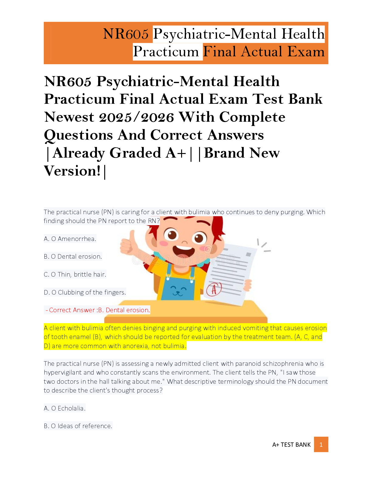 NR605 Psychiatric-Mental Health Practicum Final Actual Exam Test Bank Newest 2025/2026 With Complete Questions And Correct Answers |Already Graded A+||Brand New