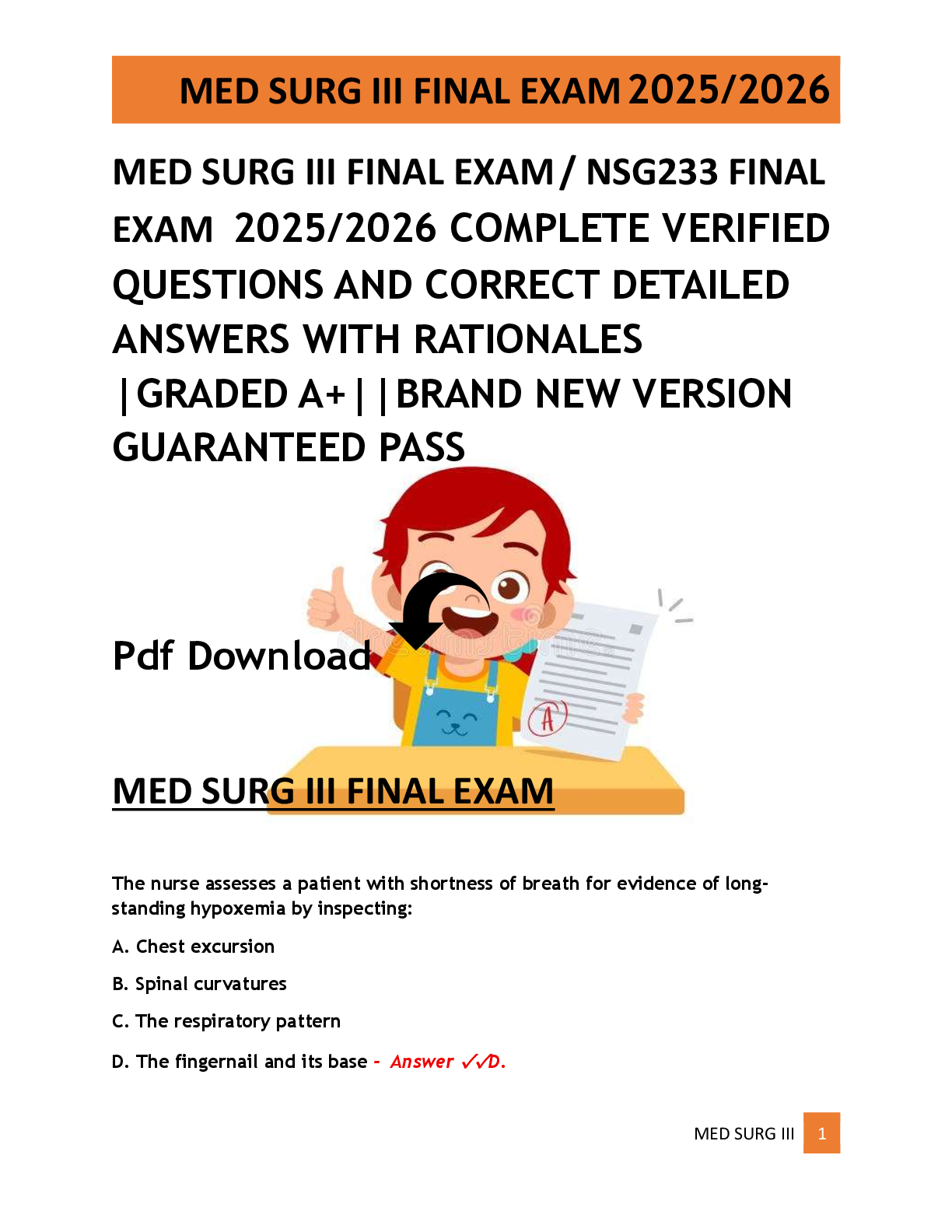 MED SURG III FINAL EXAM / NSG233 FINAL EXAM 2025/2026 COMPLETE VERIFIED QUESTIONS AND CORRECT DETAILED ANSWERS WITH RATIONALES |GRADED A+||BRAND NEW VERSION GUARANTEED PASS