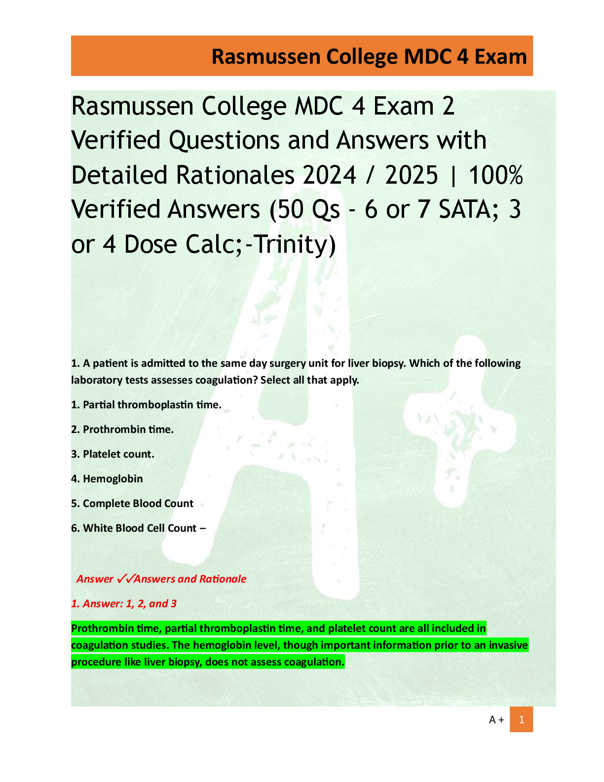 Rasmussen College MDC 4 Exam 2 Verified Questions and Answers with Detailed Rationales 2024 / 2025 | 100% Verified Answers (50 Qs - 6 or 7 SATA; 3 or 4 Dose Calc;-Trinity)