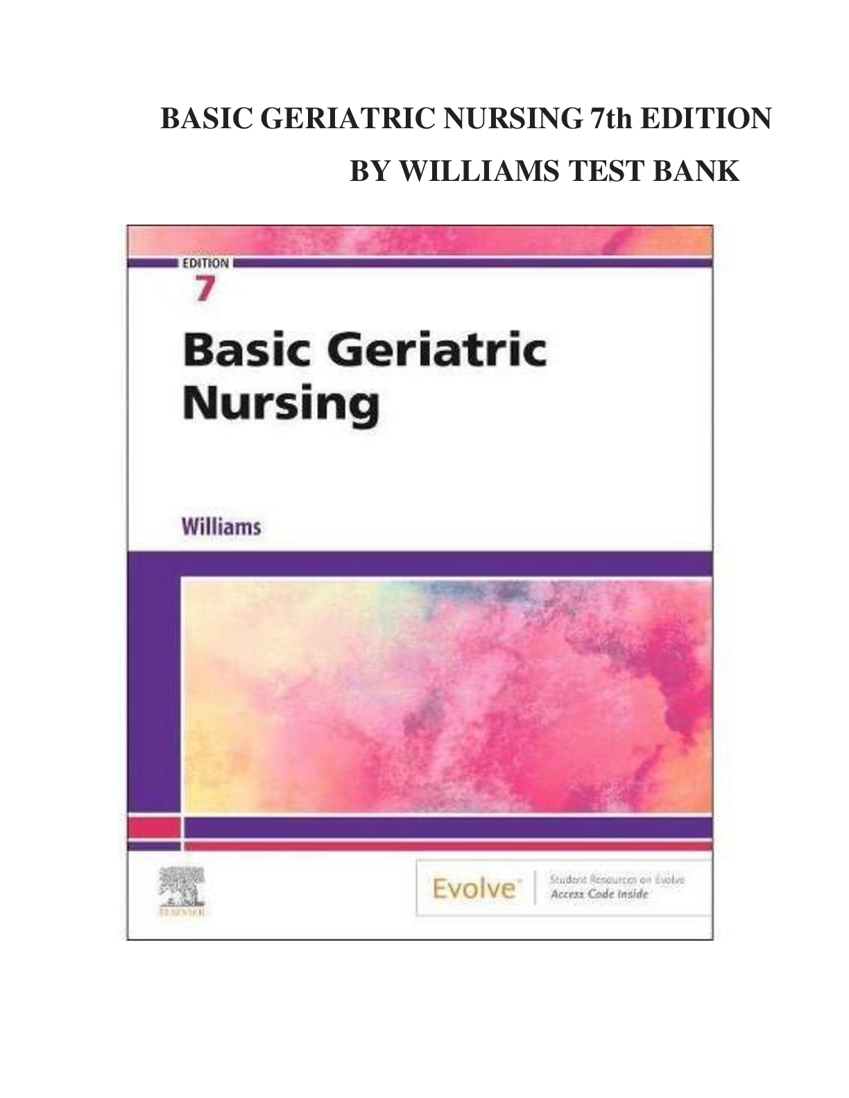 Test Bank for Basic Geriatric Nursing, 8th Edition, by Patricia A. Williams