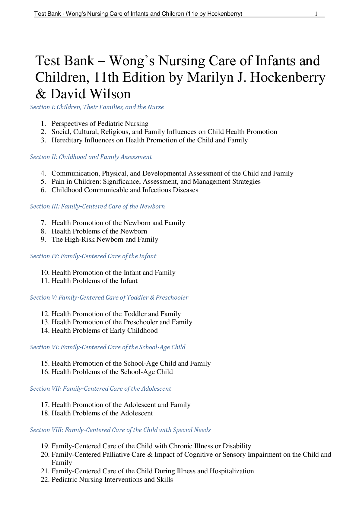 Test Bank Wong’s Nursing Care of Infants and Children, 11th Edition by Marilyn J. Hockenberry & David Wilson Test Bank for Wong's Nursing Care of Infants and Children 12th Edition by Hockenberry