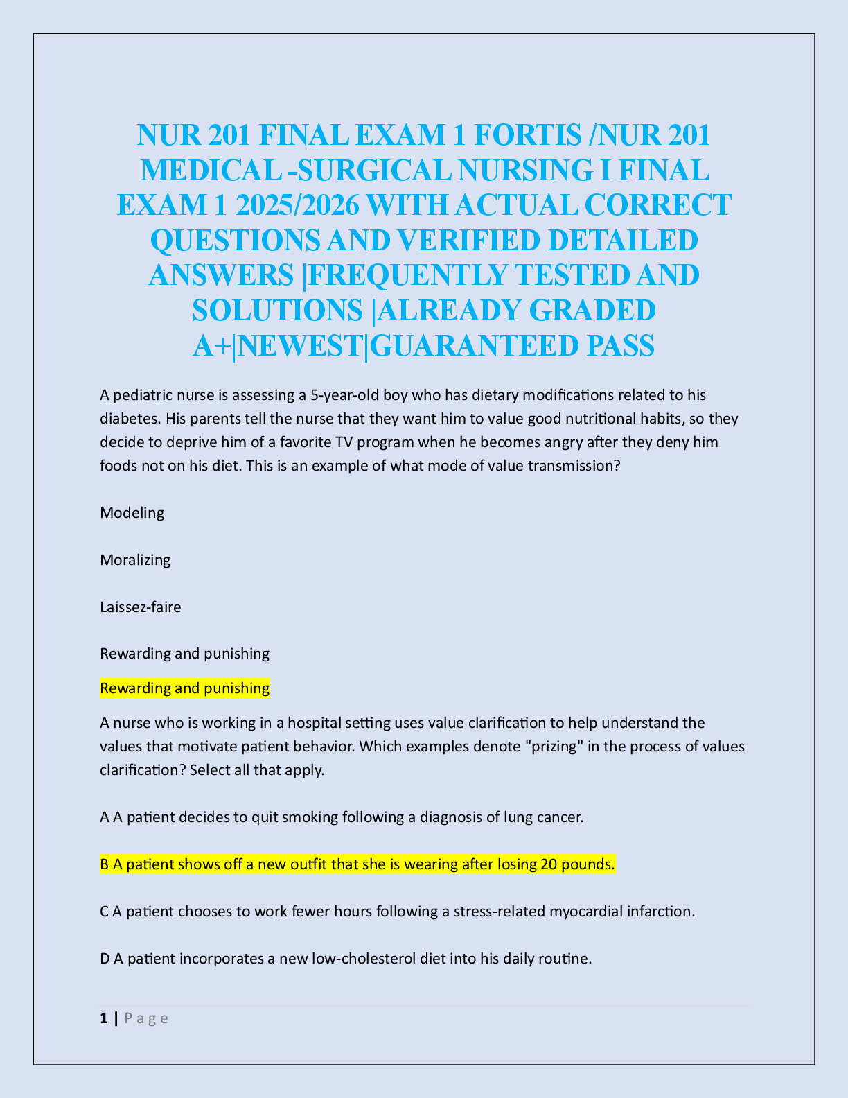 NUR 201 FINAL EXAM FORTIS /NUR 201 MEDICAL -SURGICAL NURSING I FINAL EXAM 2025/2026 WITH ACTUAL CORRECT QUESTIONS AND VERIFIED DETAILED ANSWERS |FREQUENTLY TESTED AND SOLUTIONS |ALREADY GR...