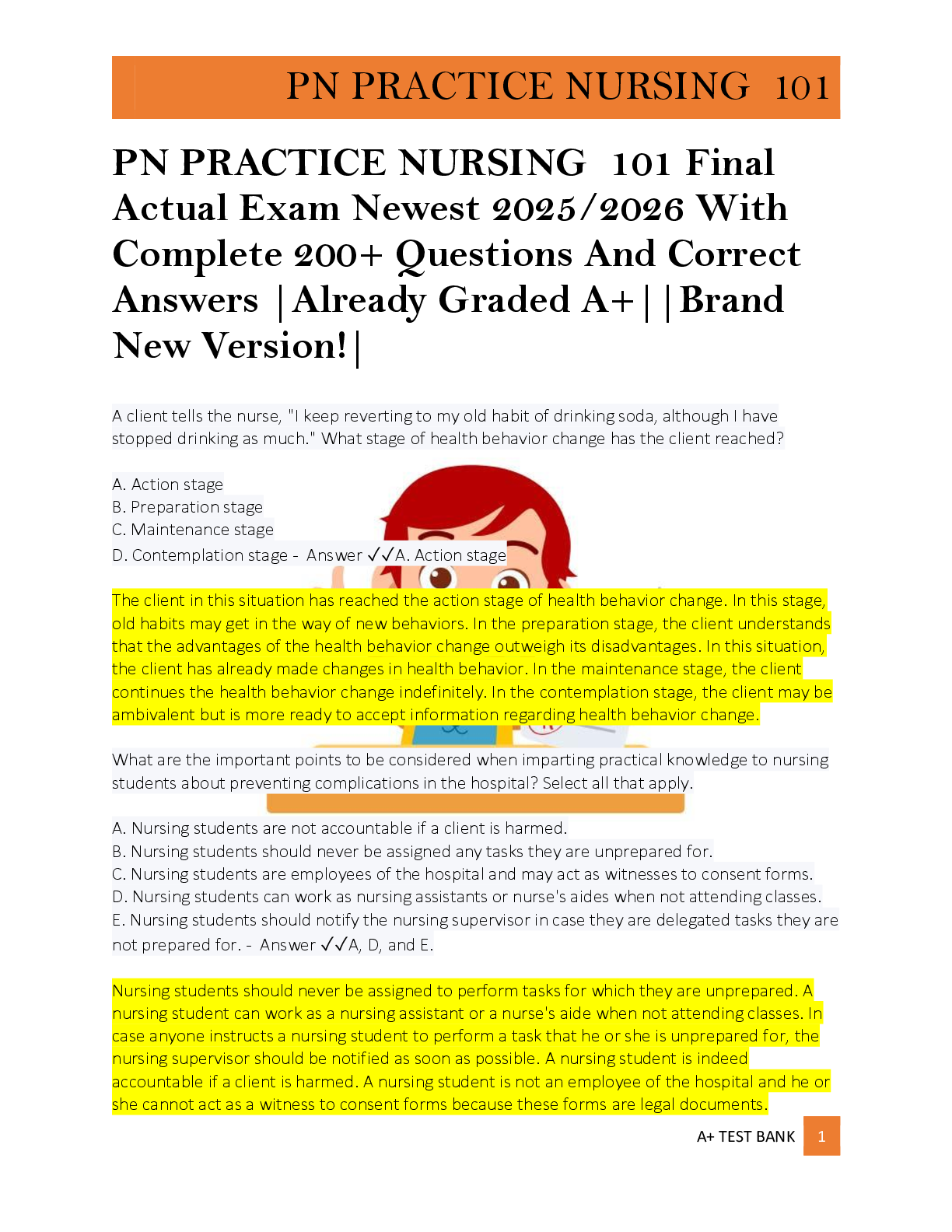 PN PRACTICE NURSING 101 Final Actual Exam Newest 2025/2026 With Complete 200+ Questions And Correct Answers |Already Graded A+||Brand New Version