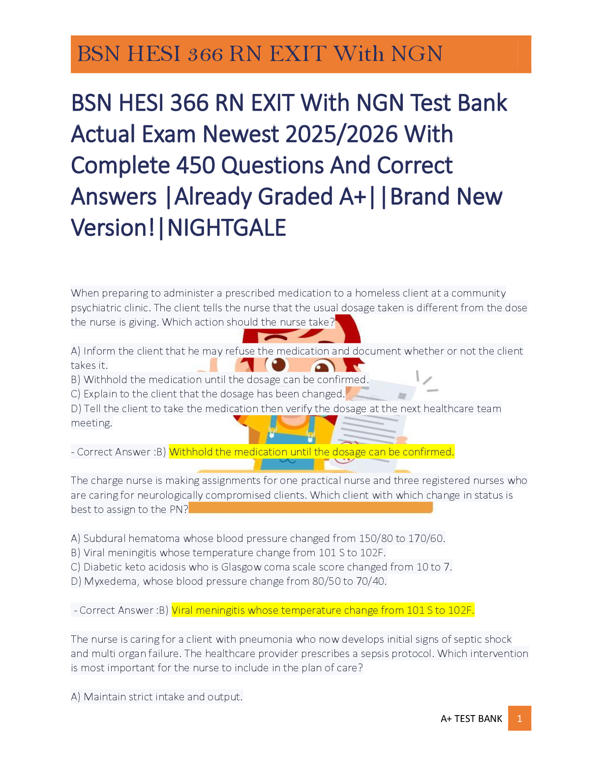 BSN HESI 366 RN EXIT With NGN Test Bank Actual Exam Newest 2025/2026 With Complete 450 Questions And Correct Answers |Already Graded A+||Brand New Version!|NIGHTGALE