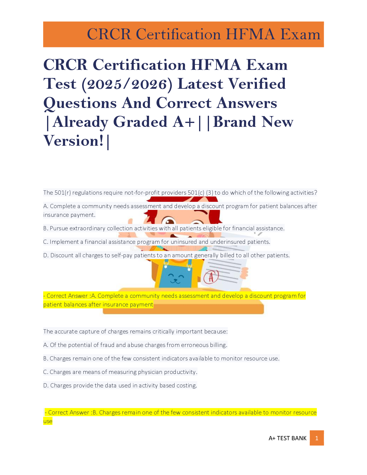 CRCR Certification HFMA Exam Test (2025/2026) Latest Verified Questions And Correct Answers |Already Graded A+||Brand New Version!|